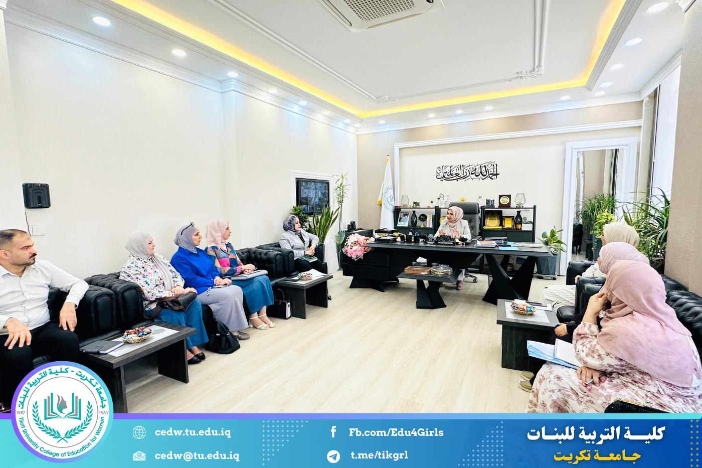 عقدت الأستاذ الدكتورة نجلاء عبد الحسين عليوي، عميد كلية التربية للبنات – جامعة تكريت، اجتماعاً مع عدد من التدريسيين المعنيين بملف مجانية التعليم، وذلك يوم الثلاثاء الموافق 2 / 9 / 2025 في عمادة الكلية.