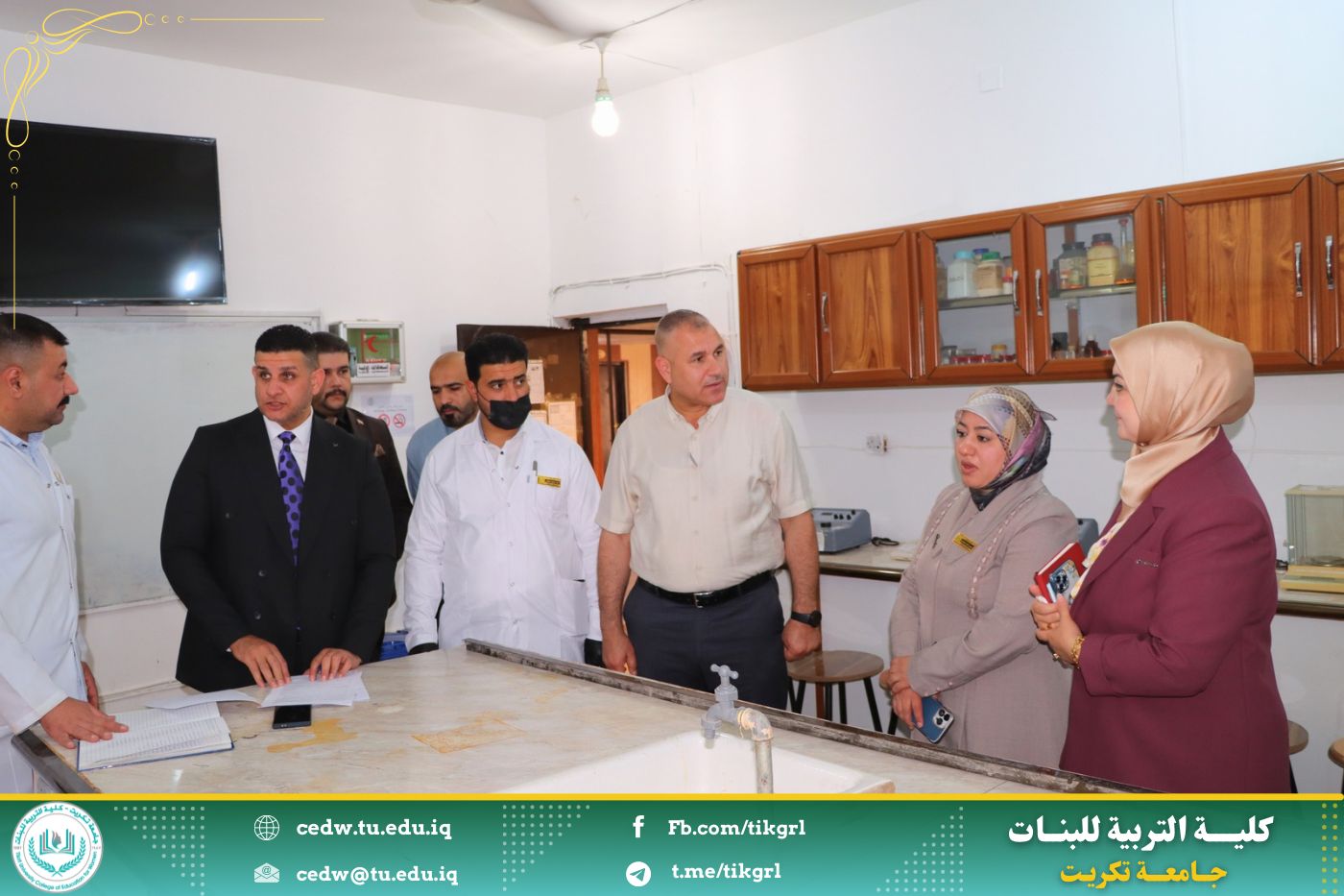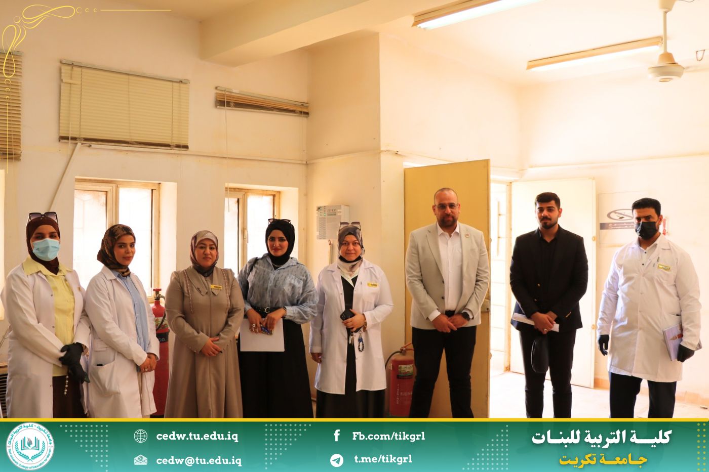 استقبلت كلية التربية للبنات – جامعة تكريت، صباح اليوم الخميس الموافق ١٩ حزيران ٢٠٢٥، لجنة السلامة والأمن الكيميائي والبايولوجي والإشعاعي التابعة لدائرة البحث والتطوير في وزارة التعليم العالي، في زيارة ميدانية هدفت إلى تقييم واقع السلامة المهنية والإجراءات الوقائية المعتمدة داخل المختبرات العلمية في الكلية.