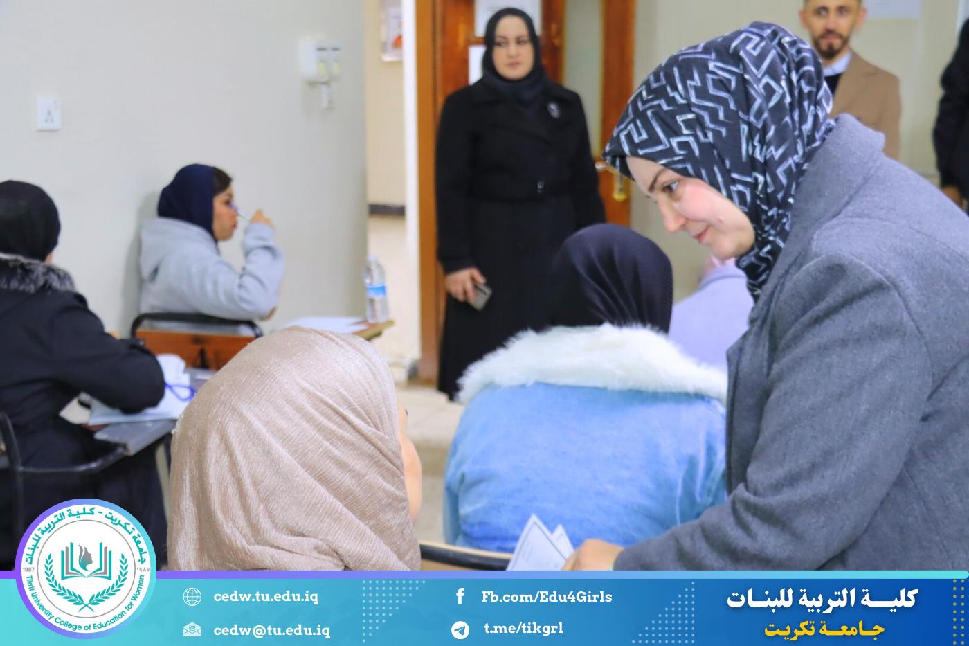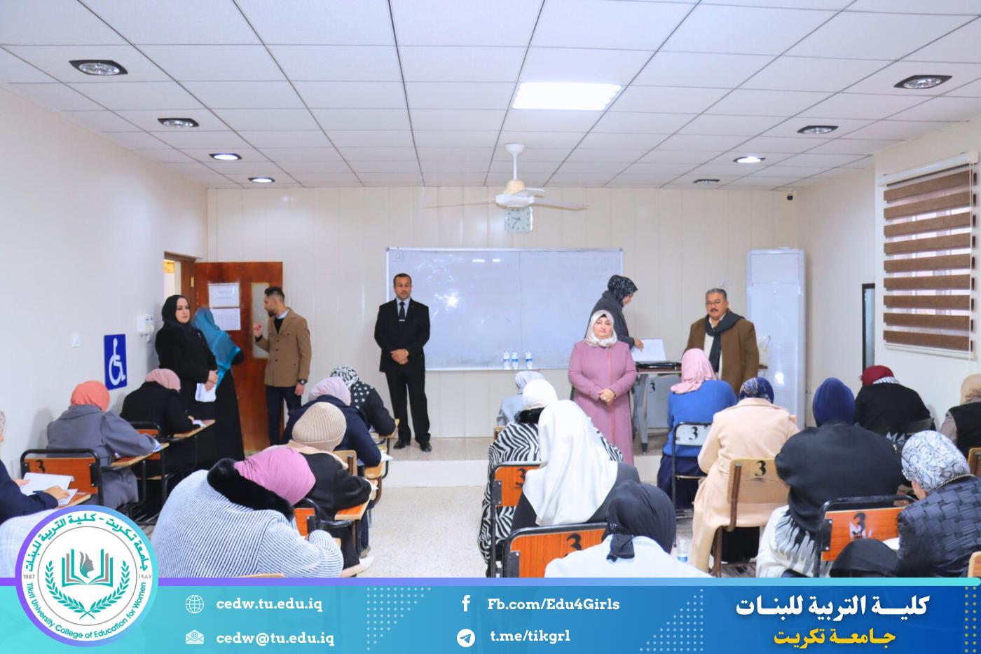 وجرت الامتحانات وفق الجداول المعلنة مسبقًا، مع الالتزام بالتعليمات والضوابط الامتحانية المعتمدة من وزارة التعليم العالي والبحث العلمي، حيث هيّأت الكلية القاعات الامتحانية ووفّرت المستلزمات اللازمة، بما يسهم في أداء الطالبات لامتحاناتهن بانسيابية وانتظام.