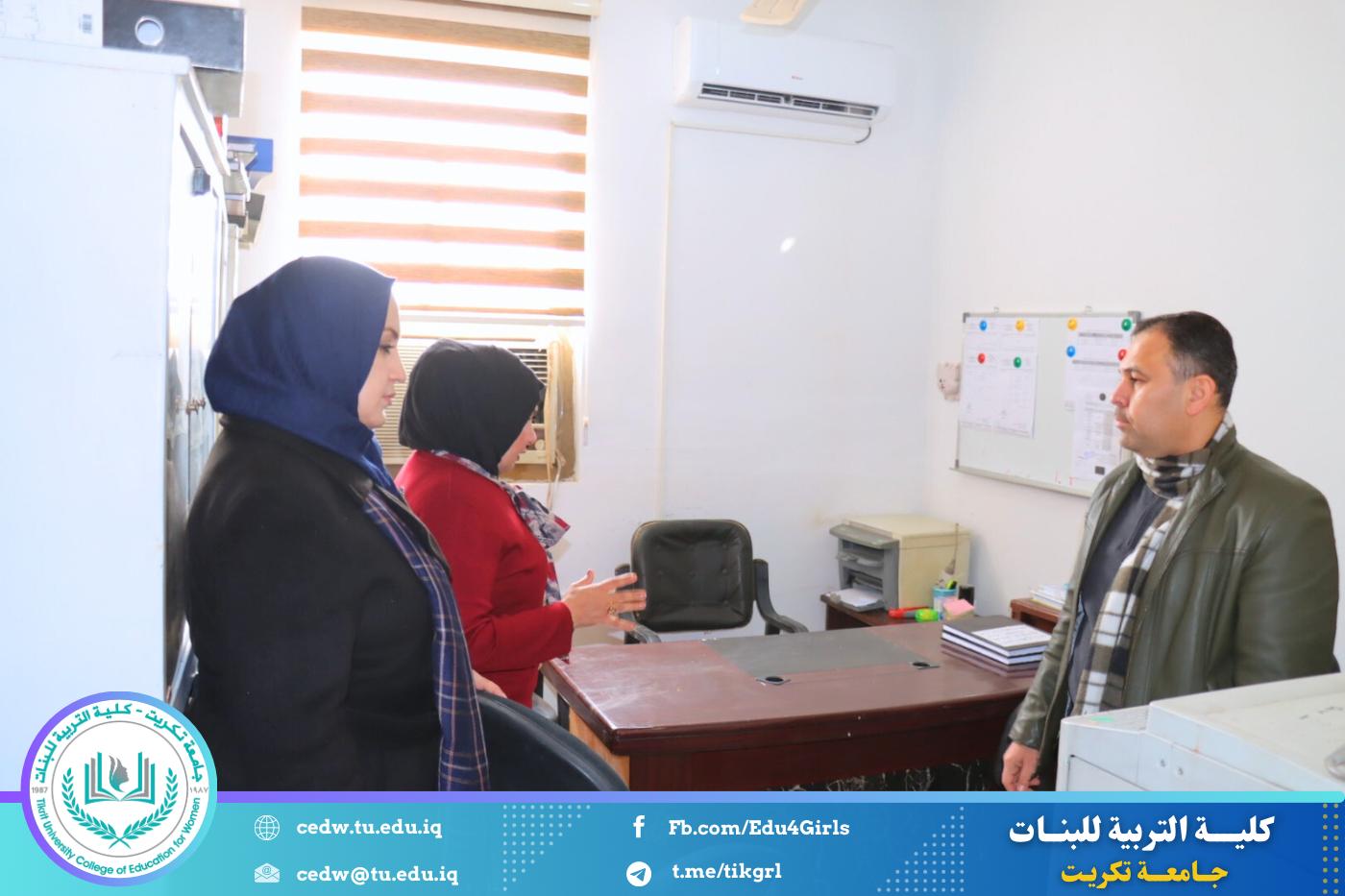 في إطار الاستعدادات الجارية لاستقبال لجنة الاعتماد المؤسسي، أجرت السيدة عميد كلية التربية للبنات الاستاذ الدكتورة نجلاء عبدالحسين عليوي، صباح اليوم الخميس الموافق ٢٩ / ١ / ٢٠٢٦ جولة ميدانية شملت أقسام وشُعب الكلية كافة، يرافقها السيدة معاون العميد للشؤون الإدارية الأستاذ المساعد الدكتورة سلمى خالد ياسين.