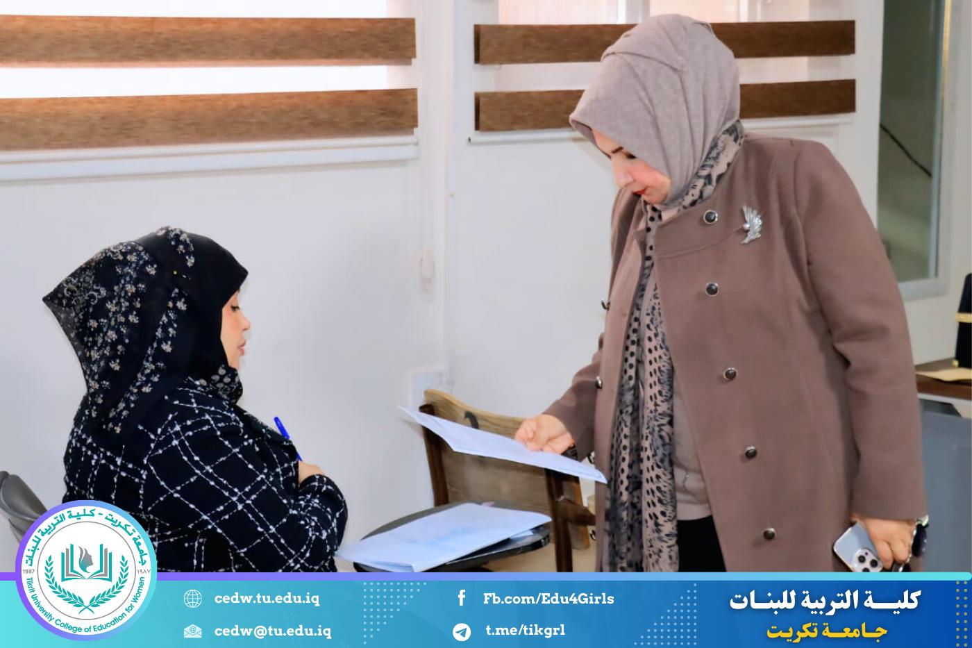 وشملت الجولة التفقدية زيارة القاعات واللجان الامتحانية في الأقسام العلمية والإنسانية، حيث حرصت عميد الكلية على متابعة آلية أداء الامتحانات والتأكد من تهيئة أجواء مناسبة للطالبات، وضمان توفر كافة المستلزمات الضرورية لإجراء الامتحانات بسلاسة.