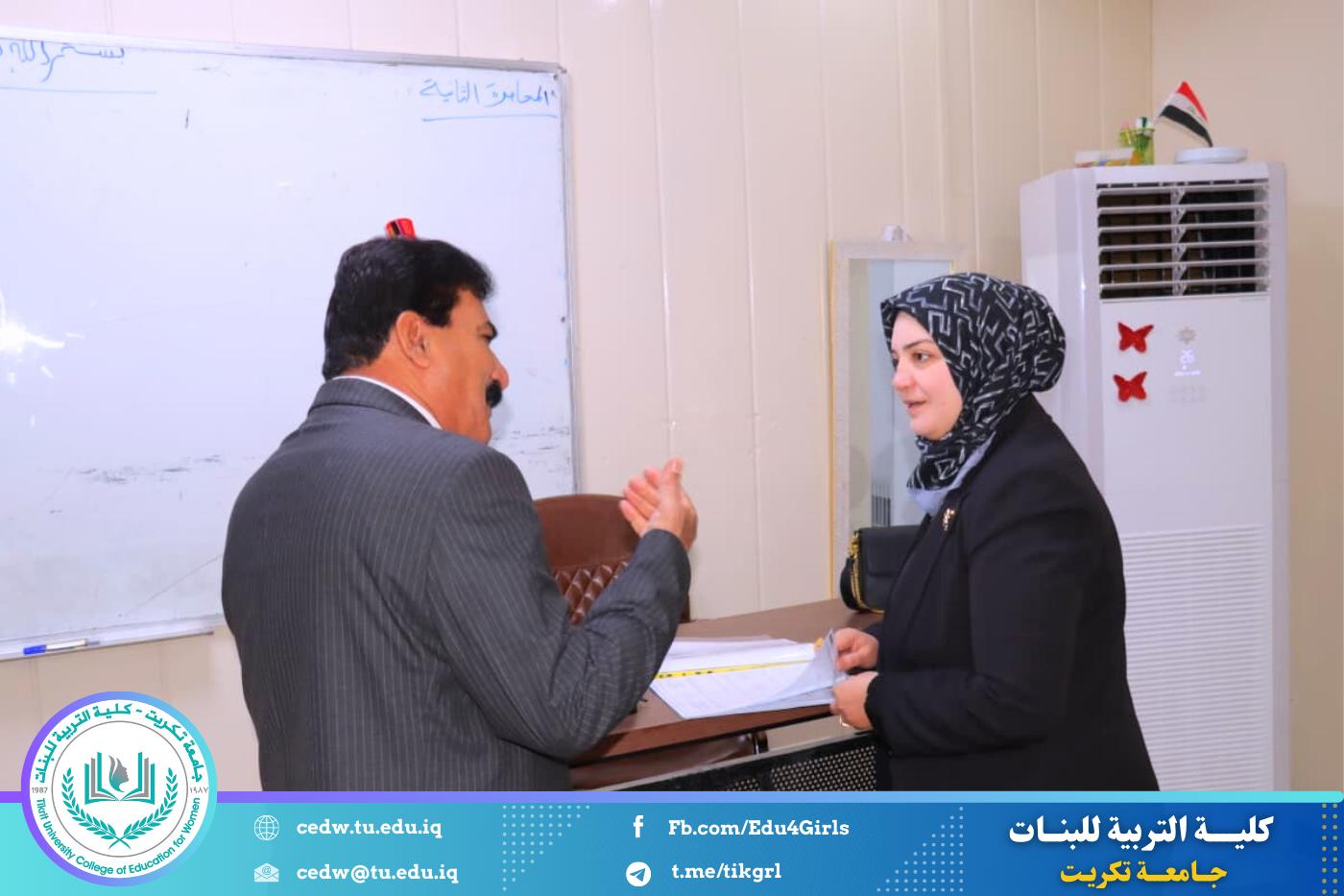 أجرت السيدة عميد كلية التربية للبنات، الأستاذ الدكتورة نجلاء عبدالحسين عليوي، صباح اليوم الثلاثاء الموافق ٢٣ / ١٢ / ٢٠٢٥، جولة تفقدية على القاعات الامتحانية، لمتابعة سير امتحانات الدراسات العليا، برفقتها كل من الأستاذ الدكتورة أشرف جمال محمود معاون العميد للشؤون العلمية، والأستاذ المساعد الدكتورة سلمى خالد ياسين معاون العميد للشؤون الإدارية.