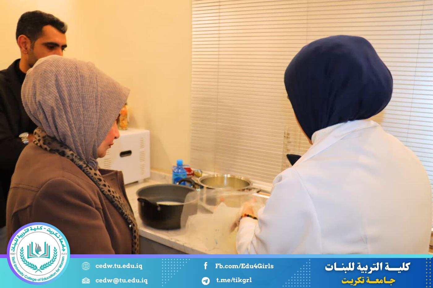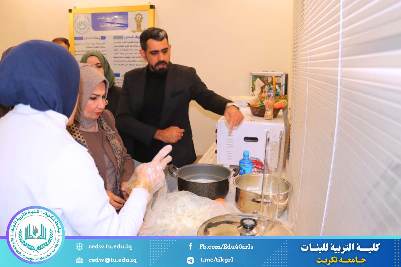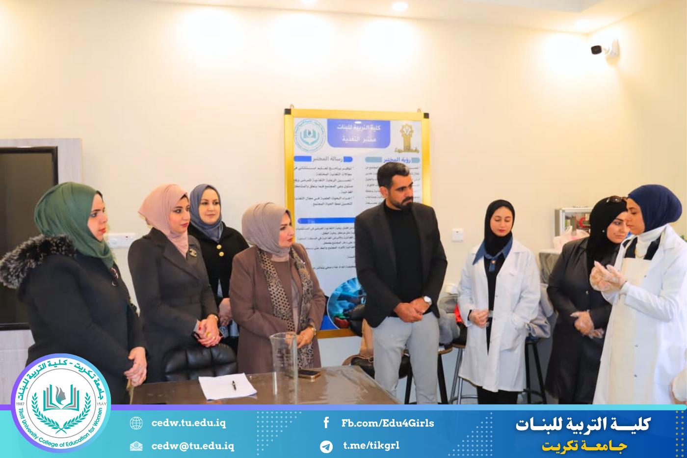 رافقها في الجولة الأستاذة المساعدة الدكتورة سلمى خالد ياسين، معاون العميد للشؤون الإدارية، بالإضافة إلى المدرس شهد خالد حميد، رئيس قسم الاقتصاد المنزلي، وعدد من أعضاء الهيئة التدريسية بالقسم. حيث شملت الجولة زيارة المختبرات العلمية ومتابعة التجارب العملية التي تقوم بها الطالبات ضمن المناهج الدراسية.