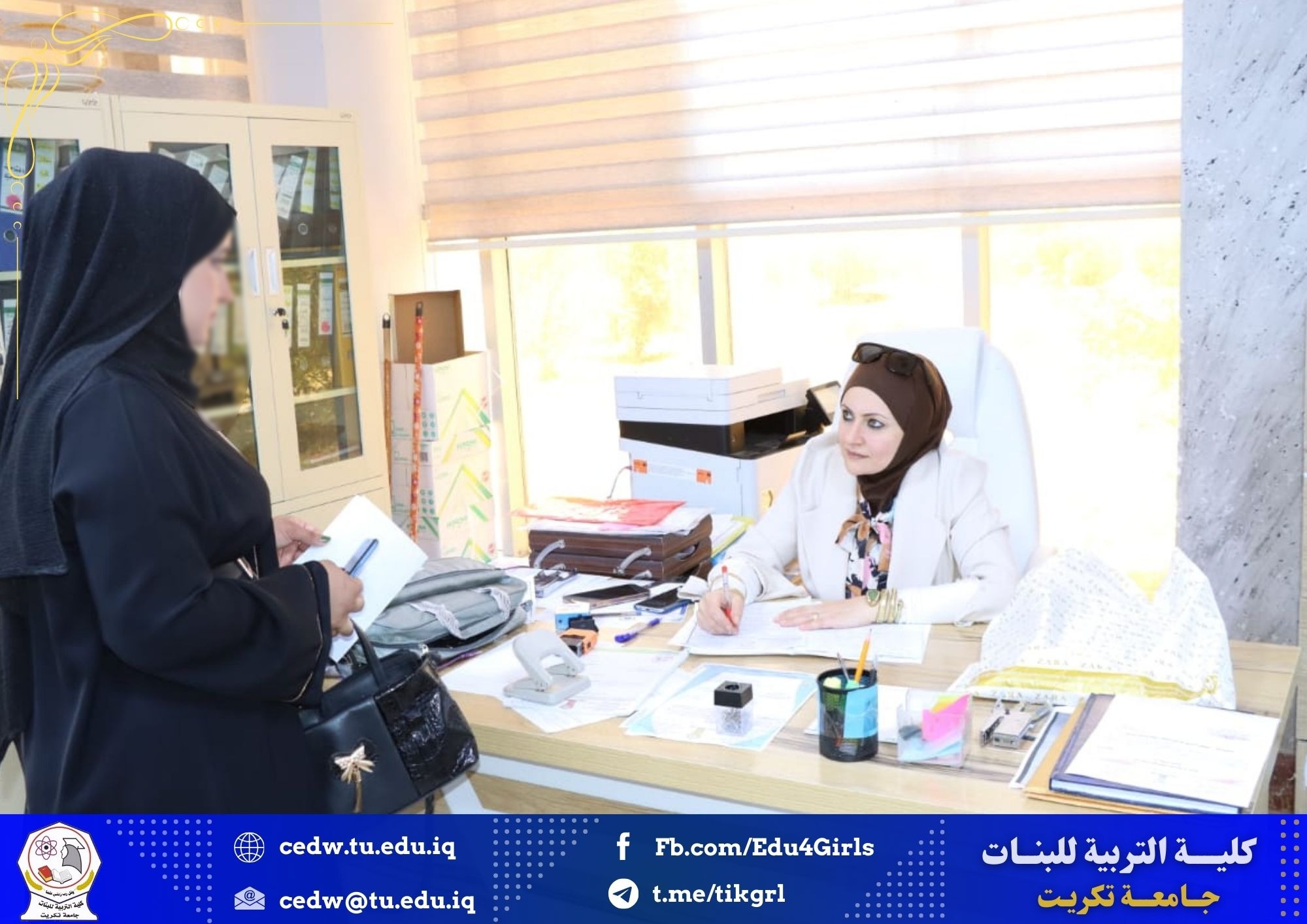 جانب من اعمال لجنة استقبال وتدقيق ملفات المتقدمات للدراسات العليا في كلية التربية للبنات جامعة تكريت للعام لدراسي 2024-2025 وذلك في يوم الاثنين الموافق 27 /5/ 2024 حيث باشرت اللجنة باستقبال الطالبات المتقدمات من جميع اقسام الكلية وتقديم كافة التسهيلات لهن