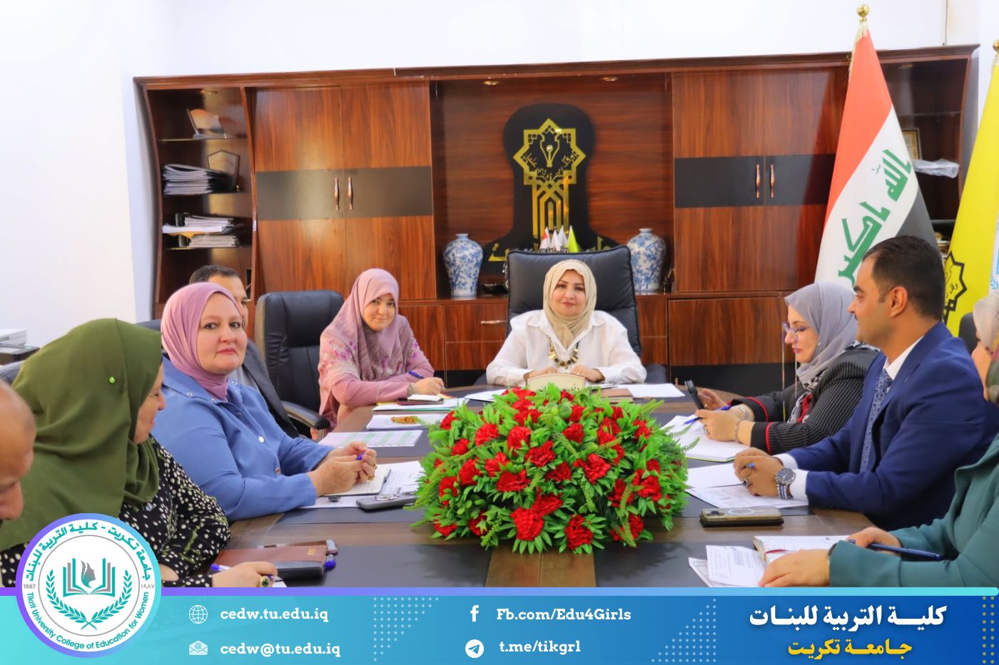 واختتمت السيدة العميد الاجتماع مؤكدة على ضرورة مضاعفة الجهود والعمل بروح الفريق الواحد، بما يعزز من مكانة الكلية ويسهم في توفير بيئة جامعية محفزة للطلبة والتدريسيين على حد سواء