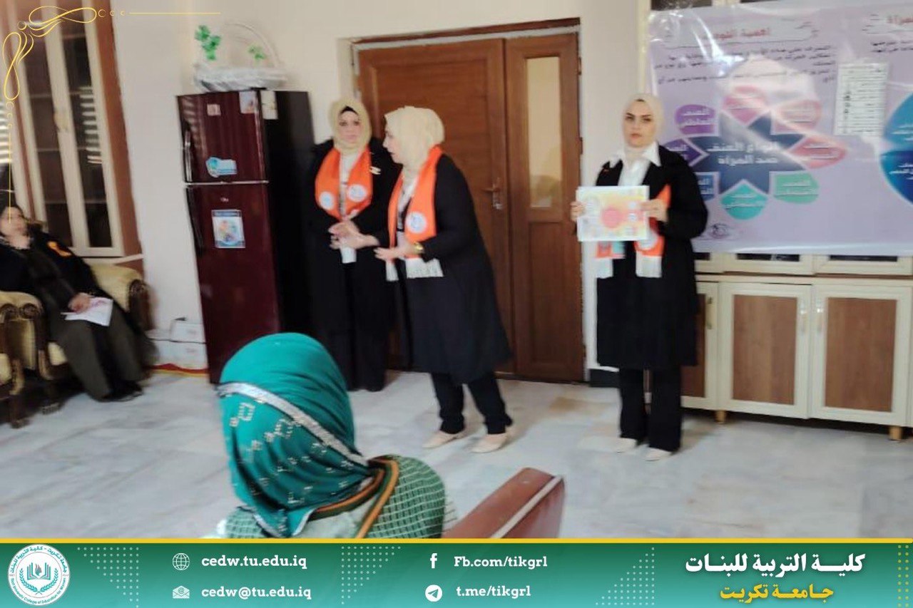 حيث استهدفت التوعيه الطالبات في اروقة الكلية للاقسام العلمية والانسانية وللموظفات والتدريسيات بصورة عامه وان الهدف من هذه التوعية هو :