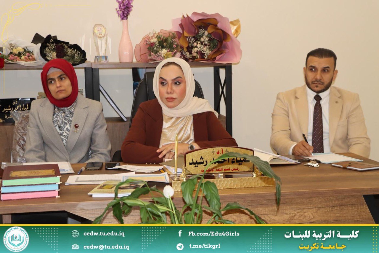 عقد قسم اللغة الإنجليزية اجتماعه الدوري للعام الدراسي الحالي 2024-2025 برئاسة السيدة رئيس القسم الاستاذ الدكتورة لمياء احمد رشيد وبحضور السادة التدريسيين يوم الثلاثاء الموافق 26/ 11/ 2024