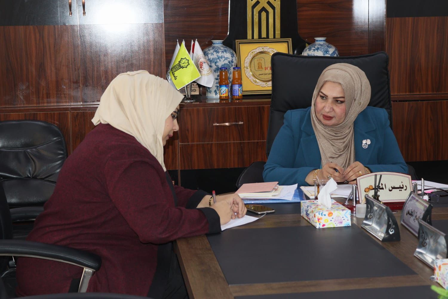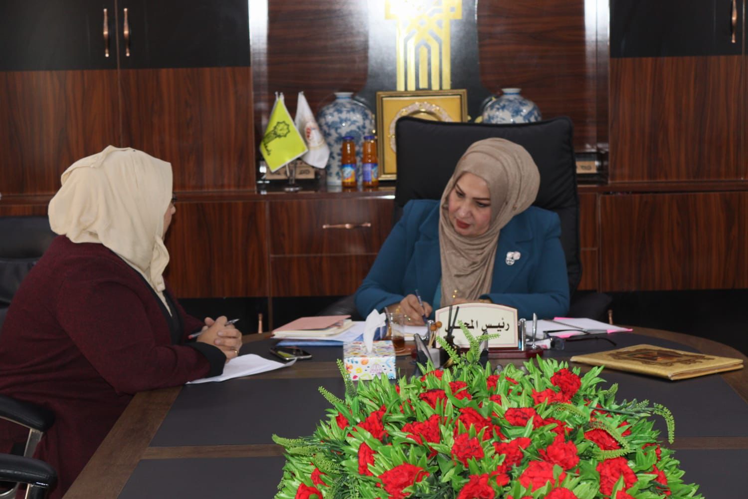 اجتمعت السيدة عميد كلية التربية للبنات الاستاذ الدكتور نجلاء عبدالحسين عليوي مع مسؤولة وحدة تمكين المراة الاستاذ المساعد الدكتور سروة عبدالقادر يوم الاربعاء الموافق ٢٤/ ١/ ٢٠٢٤ تمحور الاجتماعيات حول تشكيل فريق يعمل على وضع خطط من اجل تطوير مهارات الطالبات وتمكينهم في مجالات متعددة فضلا عن القيام بعدد من الانشطة والفعاليات داخل الكلية والجامعة والمجتمع على حد سواء حيث تهدف هذه النشاطات لرفع الوعي المجتمعي اتجاه المرآة والذي يهدف الى النهوض بالواقع الاقتصادي والاجتماعي والسياسي .