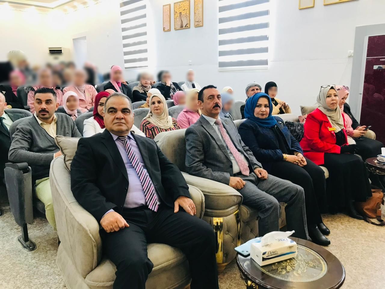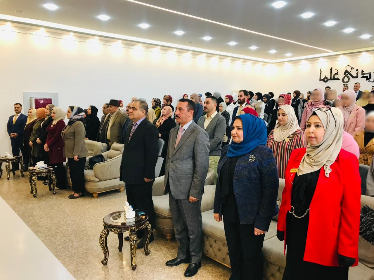 تميز الحفل بحضور مساعد رئيس جامعة تكريت للشؤون العلمية لاستاذ الدكتور حسن حسين ابراهيم و السيد عميد كلية التربية للعلوم الانسانية الاستاذ الدكتور عماد حميد احمد ومدير دار الابداع للطباعة والنشر السيد اسامة محمد صادق ومسؤول شعبة تمكين المرأة المدرس الدكتور عبير دهام كاظم وعدداً من قامات التعليم حيث كان في استقبالهم السيدة عميد كلية التربية للبنات الاستاذ الدكتور نجلاء عبدالحسين عليوي والسادة المعاونين وبعض كادر هيئة التدريس والكادر الاداري في الكلية