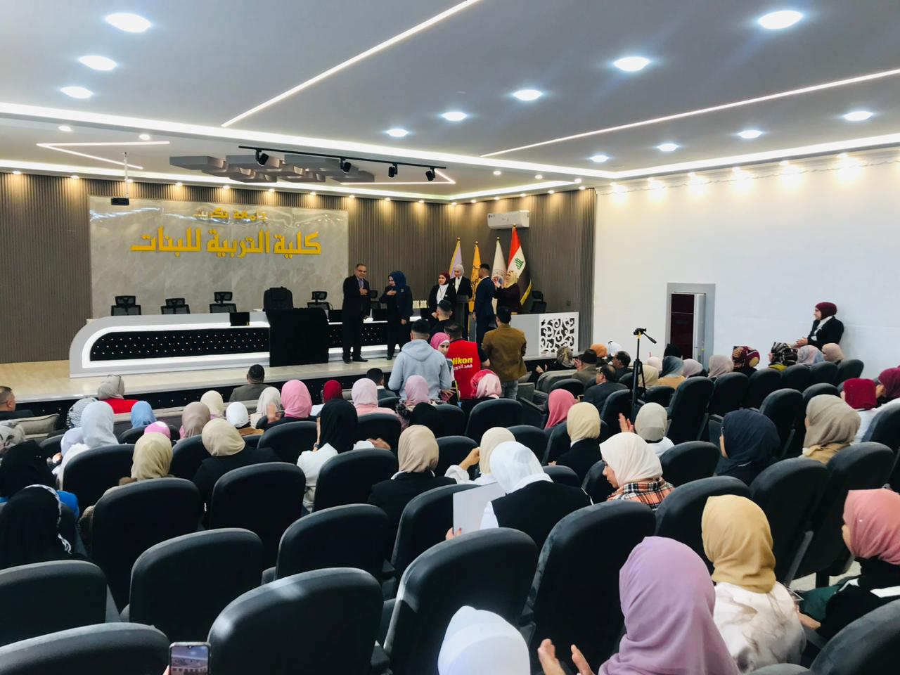 برعاية الأستاذ الدكتور وعد محمود رؤوف المحترم رئيس جامعة تكريت وبإشراف الأستاذ الدكتور نجلاء عبدالحسين عليوي المحترمة عميد كلية التربية للبنات اقامت وحدة تمكين المرأة في كلية التربية للبنات وبالتعاون مع دار الأبداع للطباعة والنشر في صلاح الدين حفل لتكريم المشاركات في مسابقة القصة القصيرة للإناث في يوم الاحد الموافق ٢٥/ ٢/ ٢٠٢٤ على رحاب قاعة القادسية وتحت شعار ( بأيديهن يصنعن الحياة مبدعات نون النسوة سطورهن نور على نور سيدات القلم والحضور ).