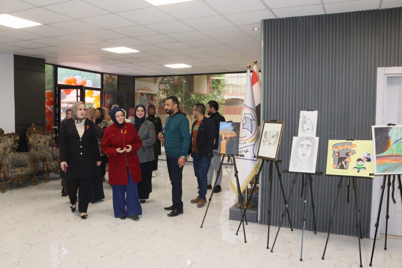 برعاية وأشراف الاستاذ الدكتور نجلاء عبدالحسين عليوي المحترمة عميد كلية التربية للبنات اقامت كلية التربية للبنات معرضاً للرسم لمناهضة العنف ضد المرأة تحت شعار: ( لانها شعاع المستقبل وامل الحاضر … امنحها الفرصة لتعطيك الحياة لا تعنفها )