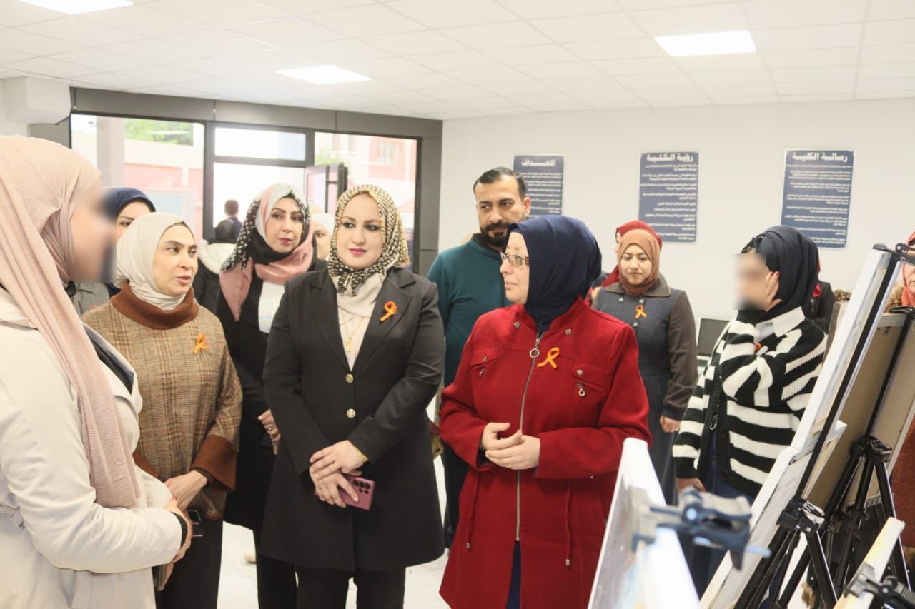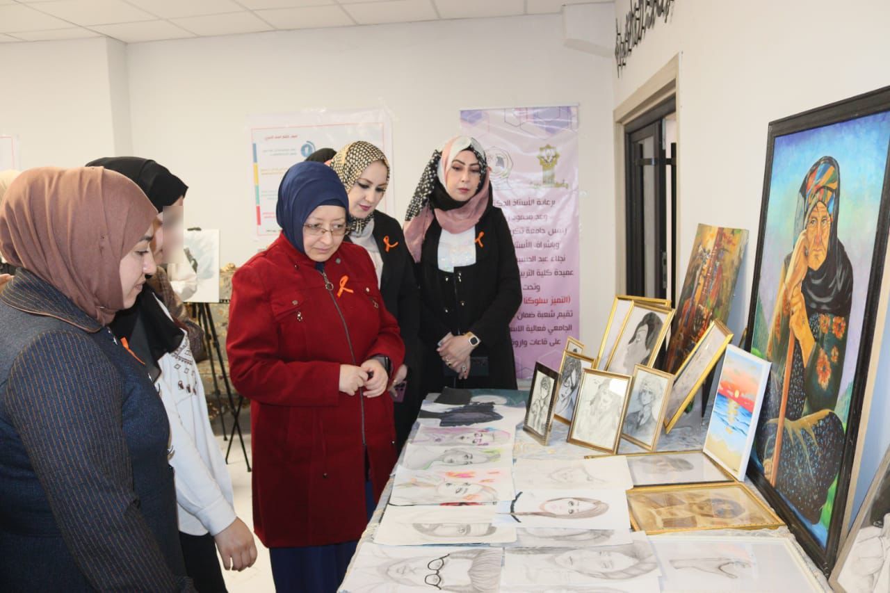تضمن المعرض عرض لوحات فنية من نتاجات الطلبة وبأشراف المعاون العلمي الاستاذ الدكتور انتصار غانم عبد الوهاب والمعاون الاداري الاستاذ المساعد الدكتور سلمى خالد ياسين ، جسدت اللوحات المشكلات التي تتعرض لها المرأة حول العالم من تقييد حرياتها وحرمانها من التعليم وزواج القاصرات والعنف المنزلي وقد ركز المعرض على قضايا المرأة العديدة ومنها العنف بمختلف أشكاله وكيف له أن يؤخر تقدم المجتمع و يُفسد أستقراره .