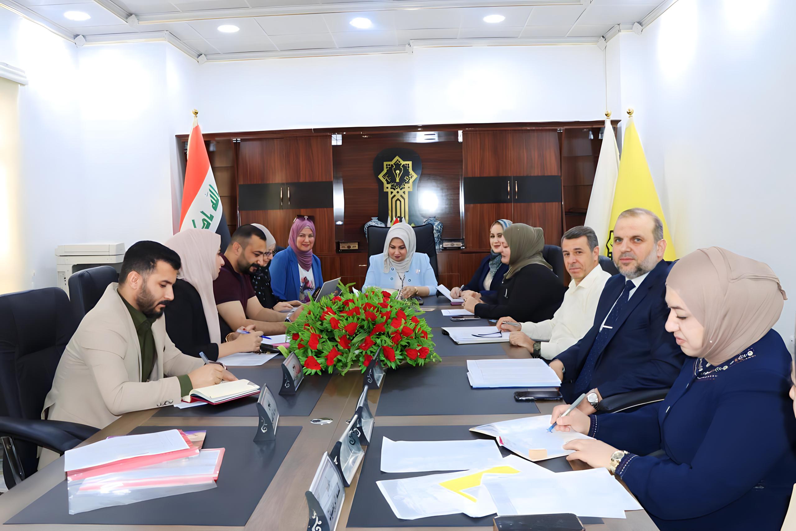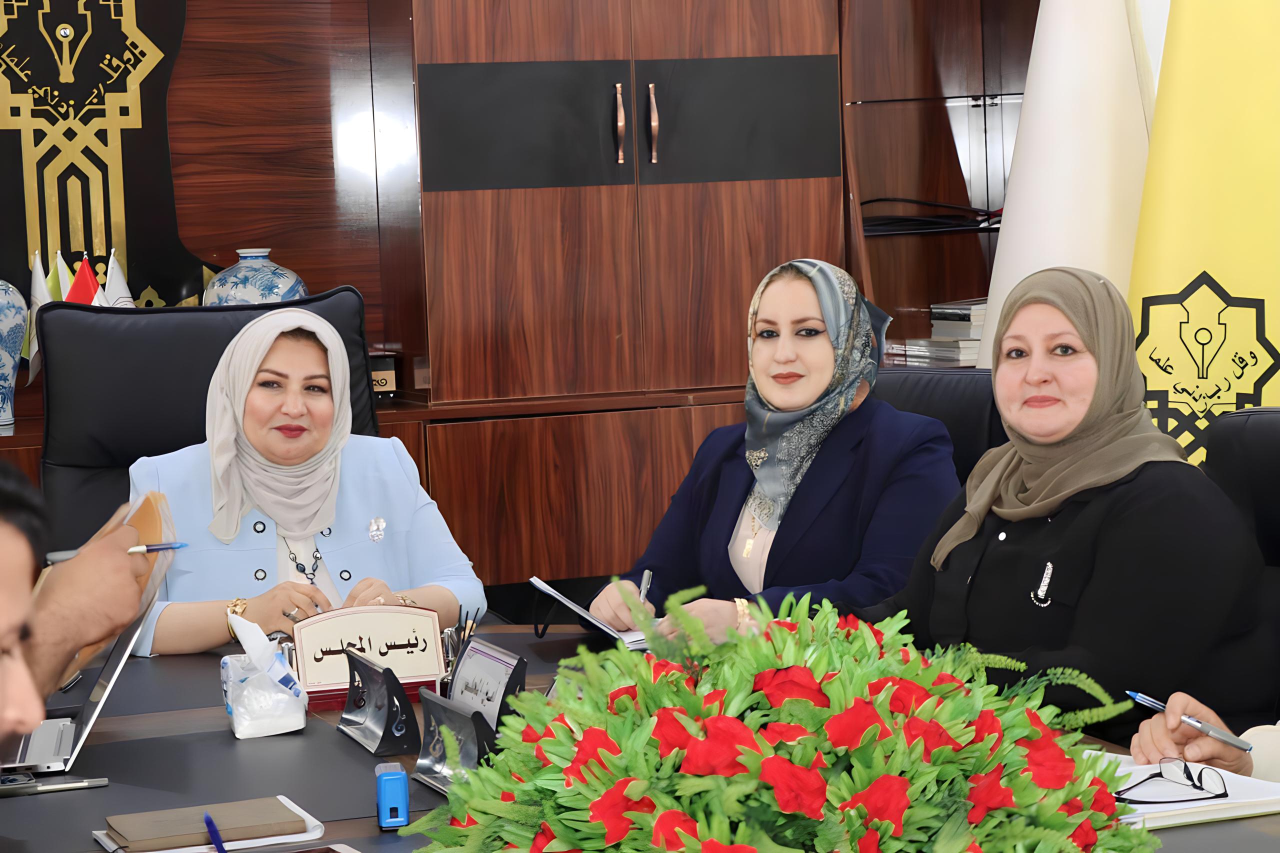 عقد مجلس كلية التربية للبنات جلسته يوم الخميس الموافق 25/ 4/ 2024 برئاسة السيدة رئيس مجلس الكلية الاستاذ الدكتورة نجلاء عبدالحسين عليوي المحترمة وبحضور الساده المعاونين وكافة اعضاء المجلس بدايةً رحبت السيدة رئيس المجلس بالاعضاء الاكارم متمنيه لهم دوام الصحة والتقدم وتطوير الكلية من خلال اداء مهامهم بكل اخلاص مثمنه جهودهم ، ثم أنتقل المجلس الى مناقشة الأمور المطروحة على جدول أعمال الجلسة ومن أهمها: