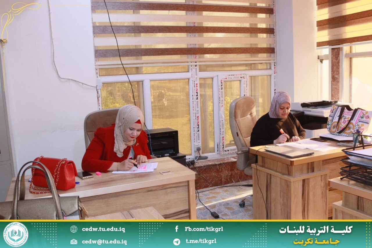 استمرار شعبة التسجيل في كلية التربية للبنات باستقبال طالبات الدور الثالث المقبولات ضمن خطة القبول المركزي لوزارة التعليم العالي والبحث العلمي للعام الدراسي 2024- 2025 بتاريخ 5/ 12/ 2024 في يوم الخميس لغرض اكمال إجراءات التسجيل من تدقيق ملفات الطالبات وادراجهم في قاعدة البيانات وتقديم كافة التسهيلات والمساعدة ضمن الاطر القانونية والابتعاد عن التعقيد الاداري