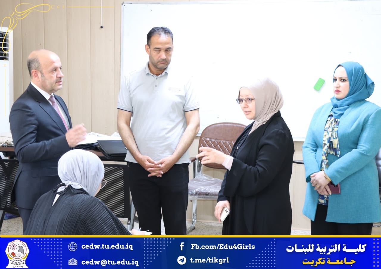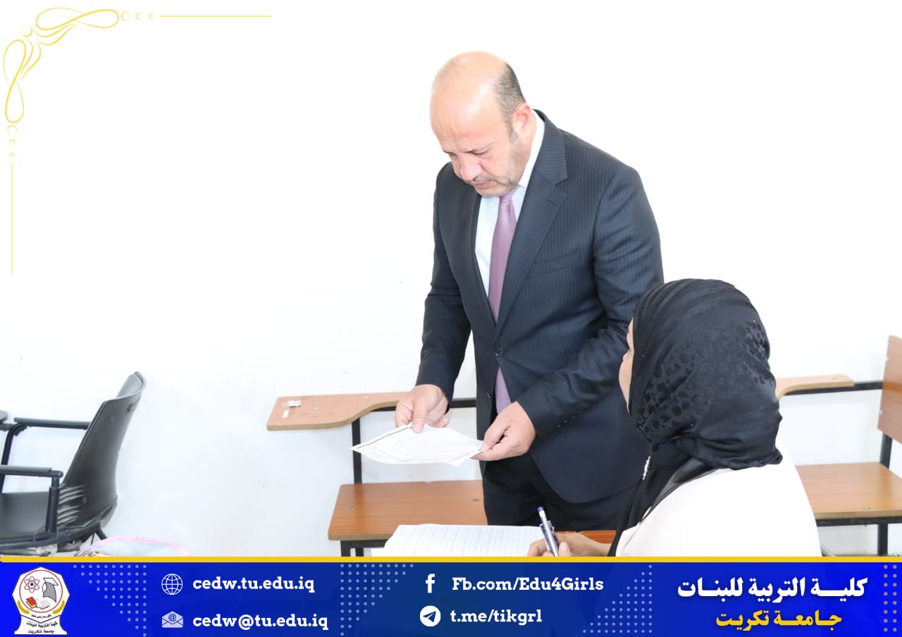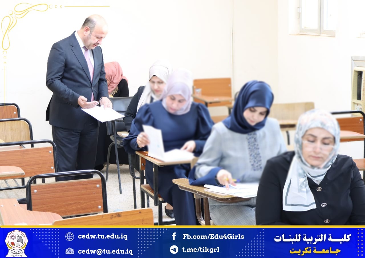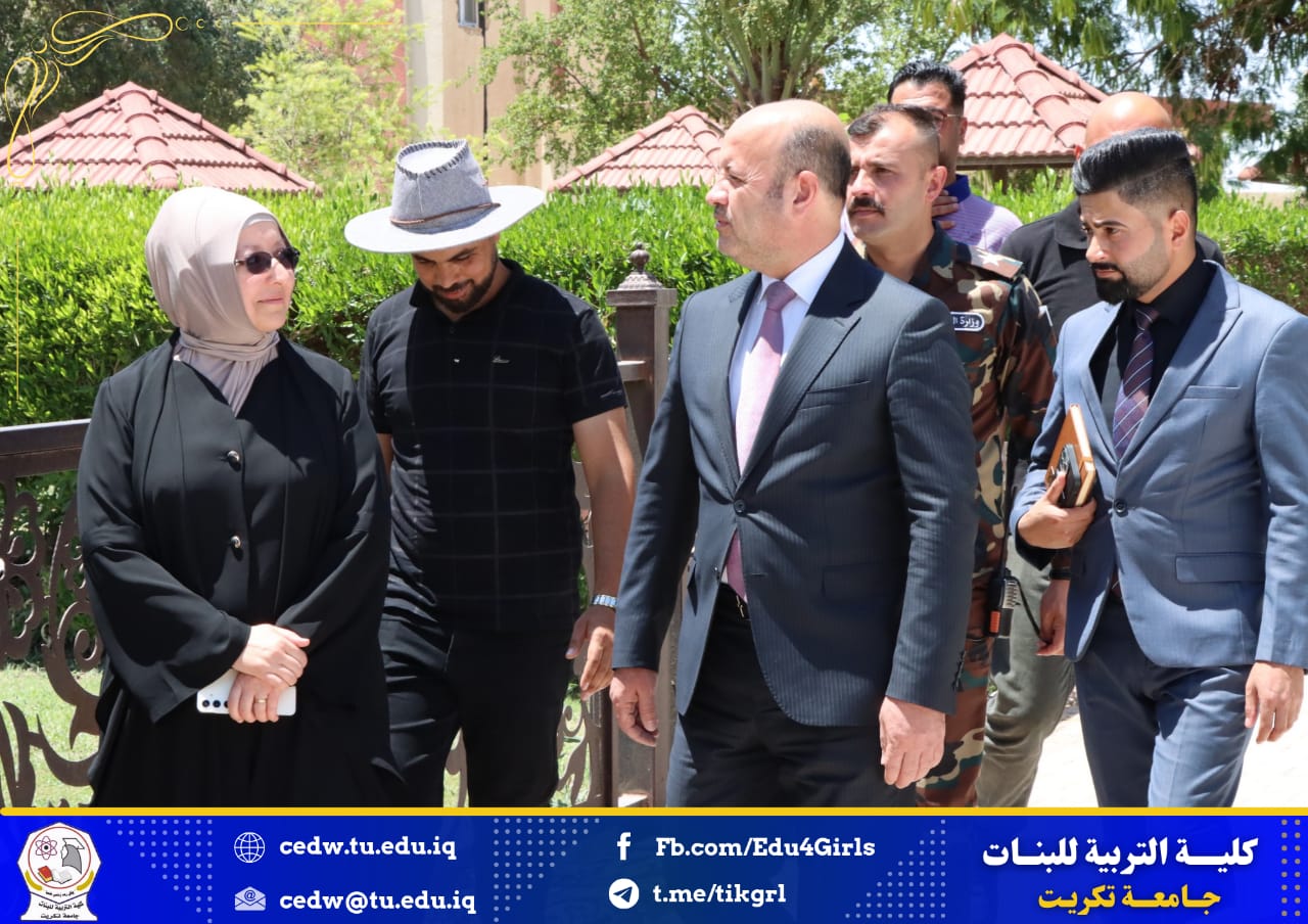 زار كلية التربية للبنات السيد رئيس جامعة تكريت الأستاذ الدكتور وعد محمود رؤوف يوم الأحد الموافق 2/ 6/ 2024 لتفقد سير الإمتحانات النهائية
