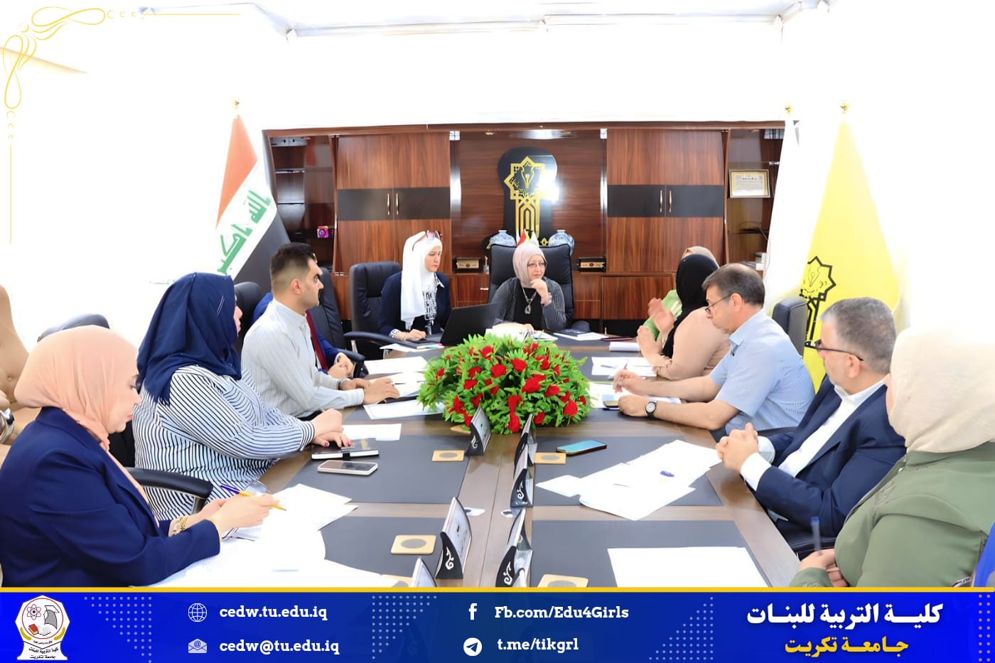 - وناقش المجلس العديد من المسائل المطروحة على جدول الاعمال وأتخذ بشأنها القرارات المناسبة التي تساهم في انجاح العملية التعليمية في كلية التربية للبنات