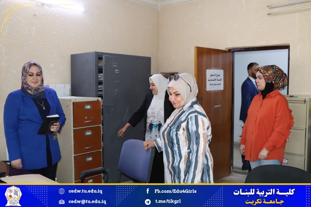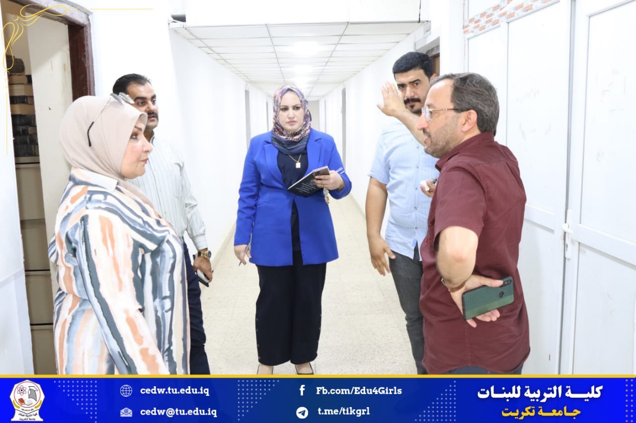 في اطار سعيها المستمر لتطوير كلية التربية للبنات اجرت السيدة عميد الكلية الاستاذ الدكتورة نجلاء عبدالحسين عليوي زيارة تفقدية للاقسام العلمية في الكلية برفقة السيدة معاون العميد للشؤون الادارية الاستاذ المساعد الدكتورة سلمى خالد ياسين وذلك في يوم الاثنين الموافق 9/ 9 /2024