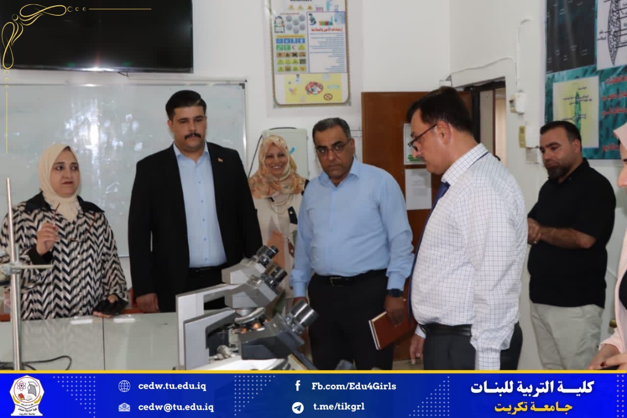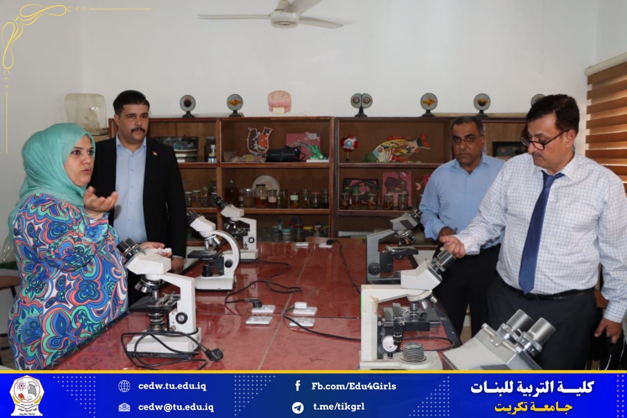 حيث اطلعت اللجنة على الأقسام العلمية في الكلية وواقع حال المختبرات والقاعات الدراسية والكادر التدريسي وأعداد الطالبات في الكلية مع كافة المرافق الأخرى التي من شأنها أن تنهض بواقع الكلية العلمي