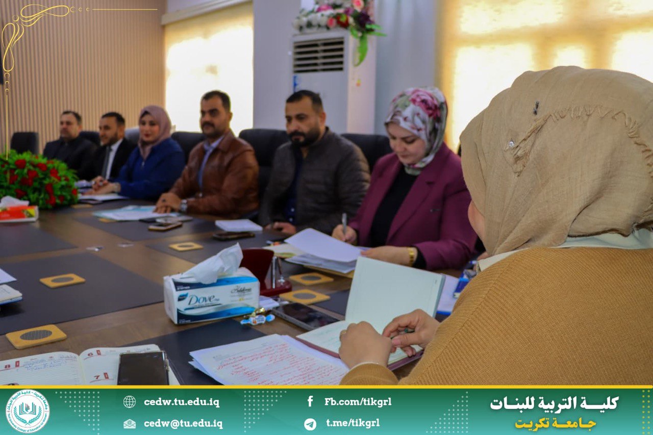 افتتحت السيدة عميد الكلية الجلسة بترحيبها بالحضور الكريم متمنية للجميع الموفقية في أداء مهام عملهم خدمة لكليتنا وحرصا على نجاح المسيرة العلمية فيها