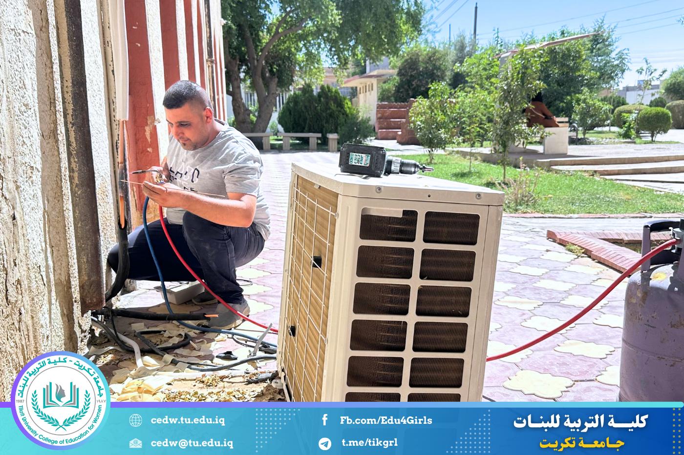 وقد تولّى فريق الصيانة الخاص بالكلية تنفيذ هذه الأعمال، والتي تضمنت صيانة أجهزة السبالت والمكيفات الهوائية لضمان استمرار عملها بكفاءة عالية، إضافة إلى صيانة القاعات الدراسية ومعالجة المقاعد الخاصة بالطالبات في جميع الأقسام العلمية والإنسانية. كما شملت الحملة تنظيفاً واسعاً للقاعات الدراسية وأروقة الكلية وساحاتها الداخلية والخارجية، بما يعكس حرص الإدارة على توفير بيئة نظيفة وصحية.
