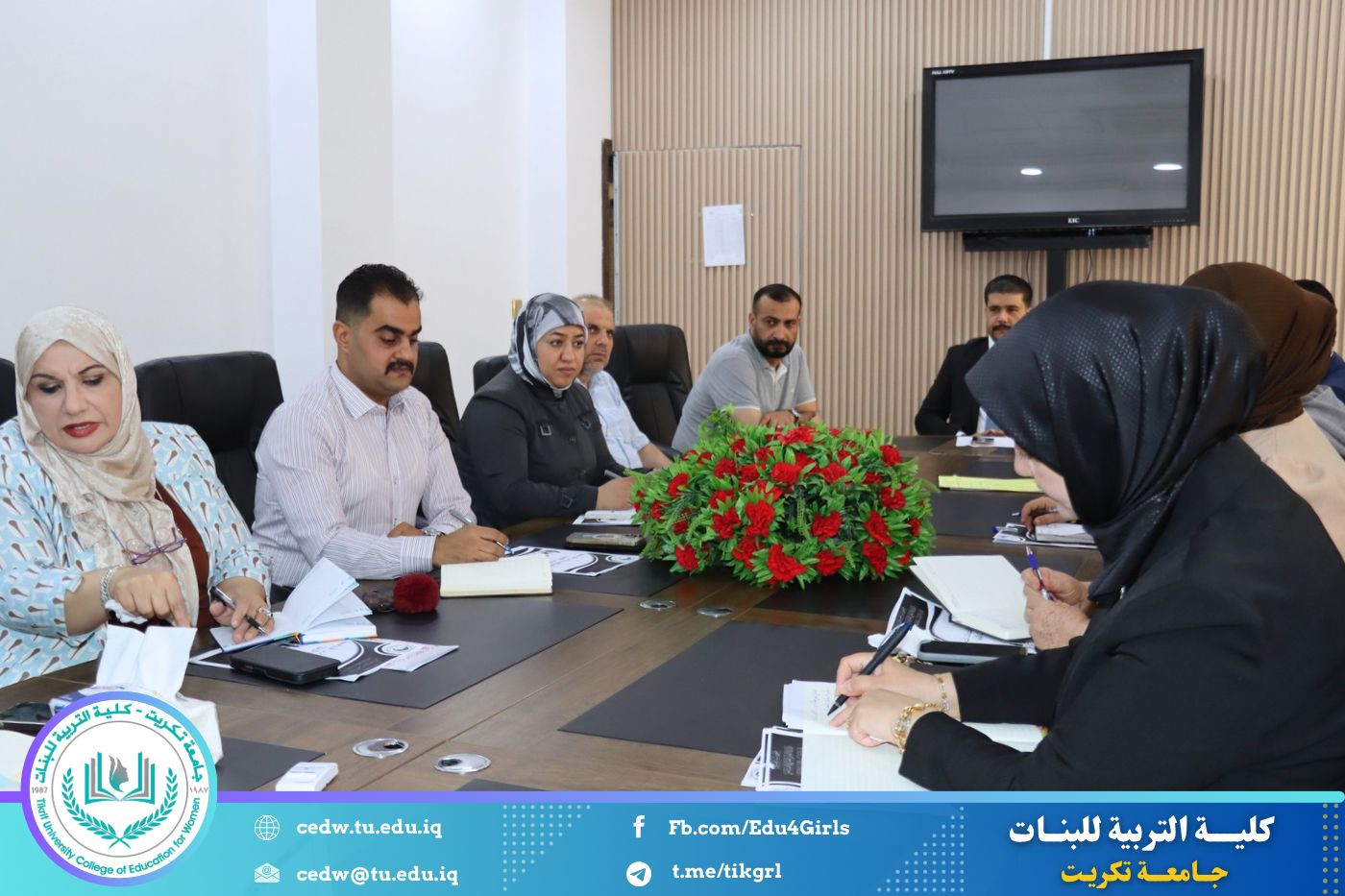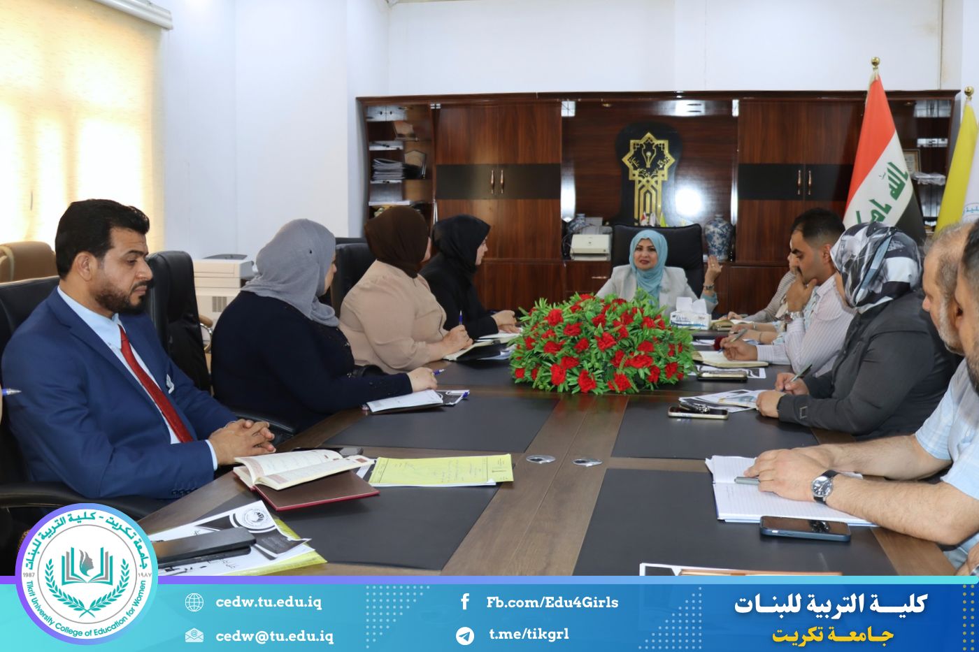 عقد مجلس كلية التربية للبنات – جامعة تكريت، صباح يوم الأحد الموافق ٣١ تموز ٢٠٢٥، جلسته الخامسة والأربعين برئاسة الأستاذ الدكتورة نجلاء عبدالحسين عليوي، عميد الكلية ورئيس المجلس، وبحضور السادة المعاونين ورؤساء الأقسام العلمية وأعضاء المجلس كافة.