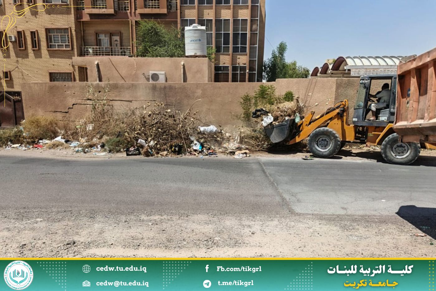 في إطار الجهود الرامية إلى تحسين البيئة الجامعية وتعزيز جودة المرافق التعليمية، وحسب توجيهات السيد رئيس جامعة تكريت الأستاذ الدكتور وعد محمود رؤوف،نفذت كلية التربية للبنات حملة شاملة لتنظيف أروقة الكلية وحدائقها وأرصفتها، في اليوم الاحد الموافق 3/ 8/ 2025 .