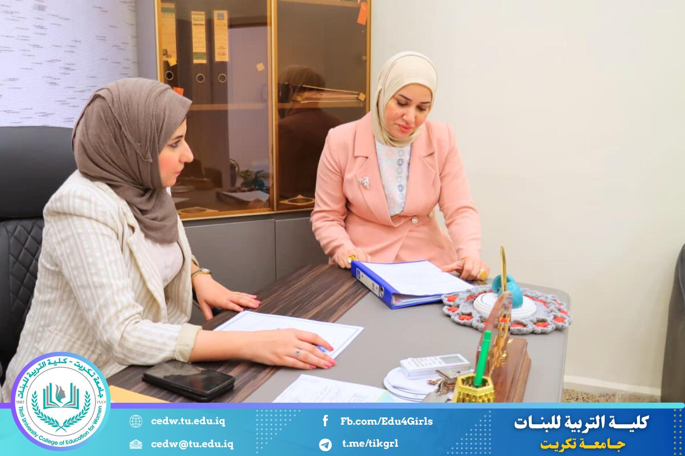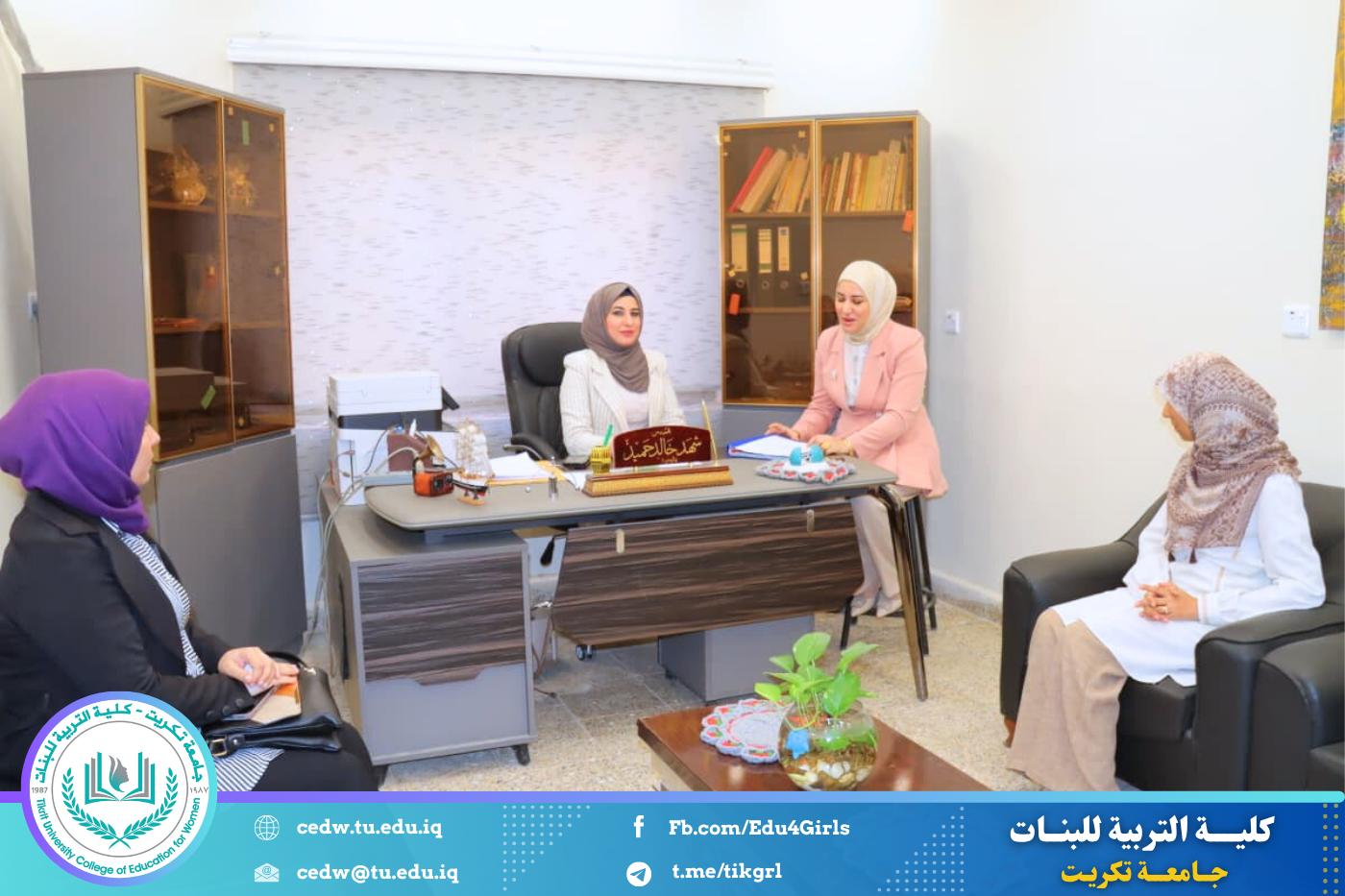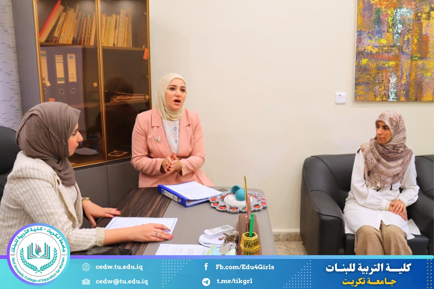 عقدت اللجنة الإرشادية في قسم الاقتصاد المنزلي بجامعة تكريت صباح اليوم الاثنين الموافق ٢٠ / ١٠ / ٢٠٢٥، اجتماعها الأول بحضور السيدة رئيس القسم المدرس شهد خالد حميد وعضوات اللجنة الإرشادية.