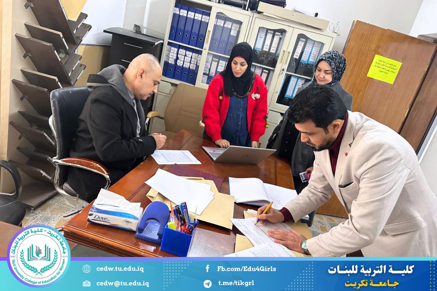 وكان في استقبال اللجنة السيدة عميد كلية التربية للبنات، الأستاذ الدكتورة نجلاء عبد حسين عليوي، والسيدتان معاونات العميد للشؤون العلمية والإدراية ، الأستاذ الدكتورة أشرف جمال محمود، و الأستاذ المساعد الدكتورة سلمى خالد ياسين، والسيدة مسؤولة شعبة الدراسات العليا ، الاستاذ المساعد الدكتورة هبة هاني عبدالله، وعدد من رؤساء الأقسام العلمية وأعضاء الهيئة التدريسية.