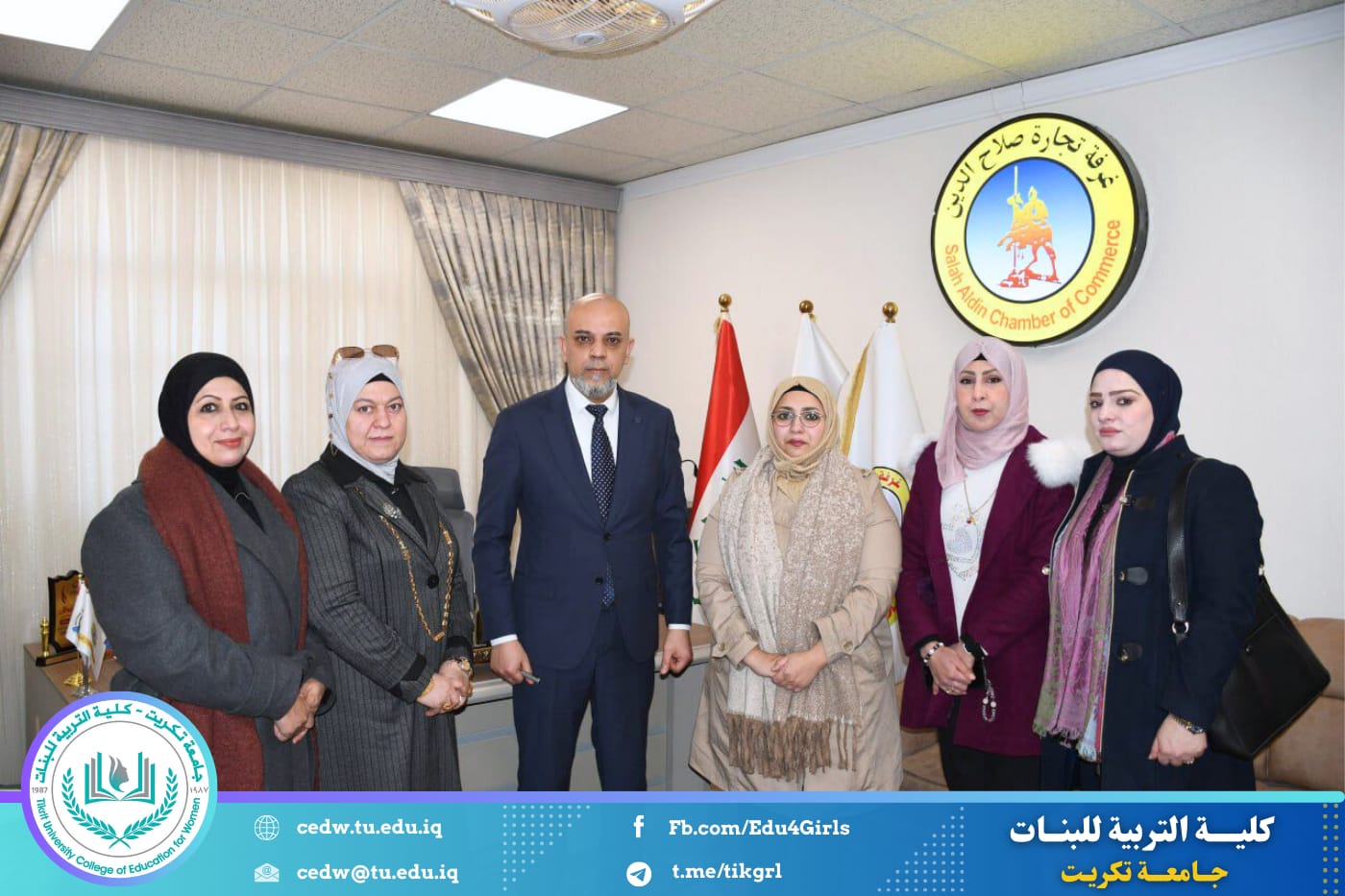 في سياق انفتاح كلية التربية للبنات – جامعة تكريت على المؤسسات الاقتصادية ودعم مسارات تأهيل الخريجات، قام وفد من الكلية بزيارة غرفة تجارة صلاح الدين، بهدف مناقشة فرص التعاون في مجالات التدريب والتأهيل المهني، بما يسهم في تعزيز جاهزية طالبات المرحلة الرابعة والخريجات للاندماج في سوق العمل.