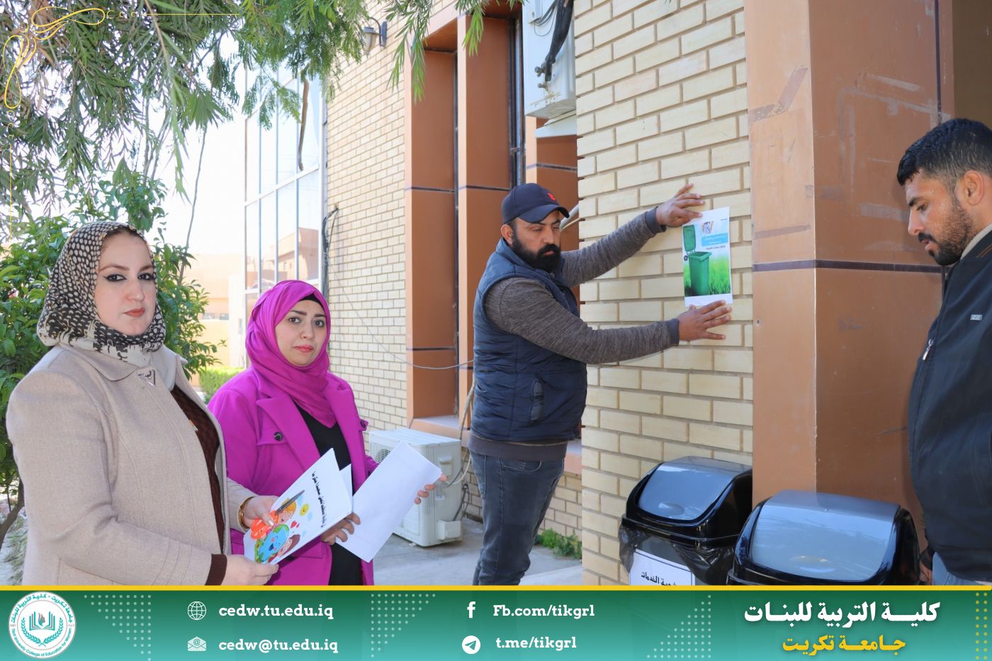 تضمنت الحملة التي اشرفت عليها السيدة معاون العميد للشؤون الأدارية الاستاذ المساعد الدكتورة سلمى خالد ياسين والسيدة مسؤولة وحدة شؤون المرأة في الكلية الأستاذ المساعد الدكتورة سروة عبدالقادر محمد صالح توزيع ولصق بوسترات توعوية تهدف الى الحفاظ على البيئة من خلال عدم رمي الأوساخ الا في الاماكن المخصصة لها وايضاً تم توزيع سلات المهملات في اروقة الكلية