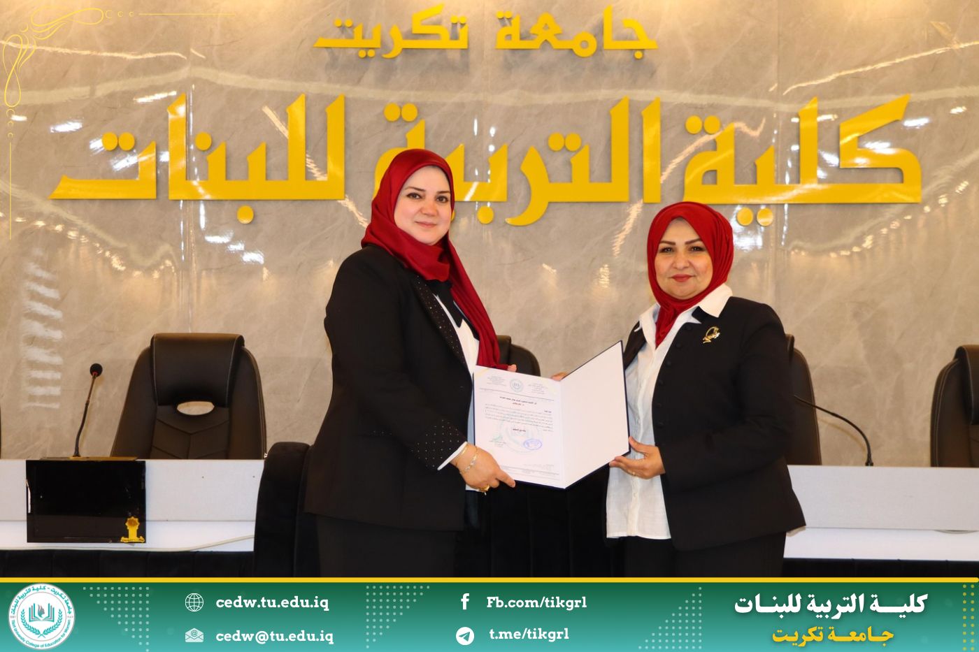برعاية الأستاذ الدكتور وعد محمود رؤوف رئيس جامعة تكريت وبإشراف الأستاذ الدكتورة نجلاء عبدالحسين عليوي عميد كلية التربية للبنات وبحضور معاوني العميد للشؤون العلمية والإدارية الأستاذ الدكتورة أشرف جمال محمود والأستاذ المساعد الدكتورة سلمى خالد ياسين والسادة رؤساء الأقسام وعدد من تدريسيين الكلية وطالباتها،