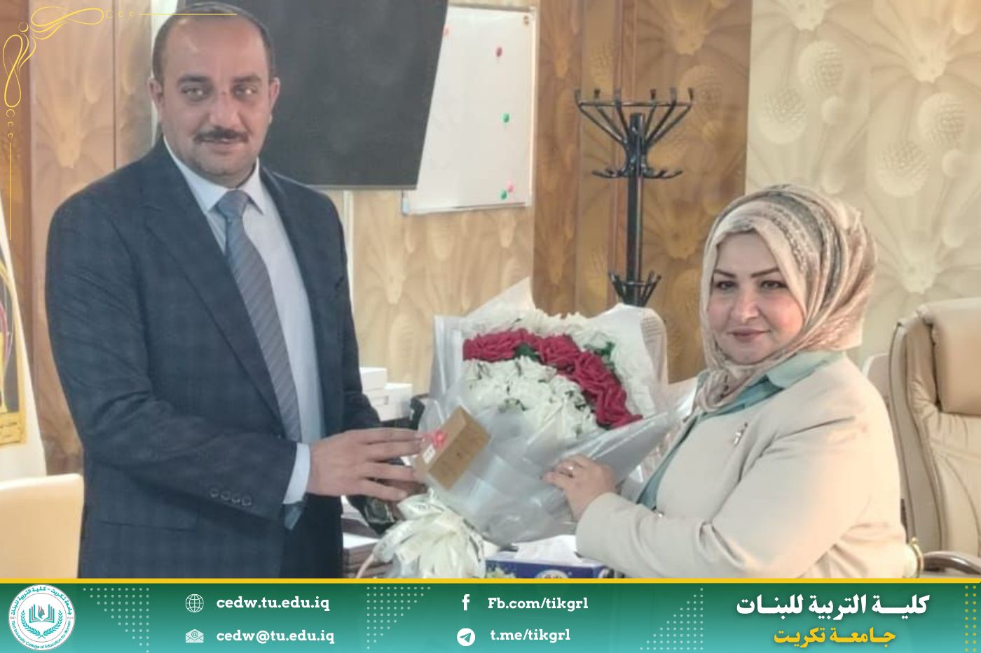 من جانبه رحب السيد عميد كلية الصيدلة بهذه الزيارة شاكراً الدكتورة نجلاء المحمداوي على التهنئة ومشدداً على أهمية مواصلة التعاون والشراكة الأكاديمية بين الكليتين ومشيداً بمكانة كلية التربية للبنات في جامعة تكريت واعتزازه بها وتمنياته لها بمزيد من التألق والإبداع.