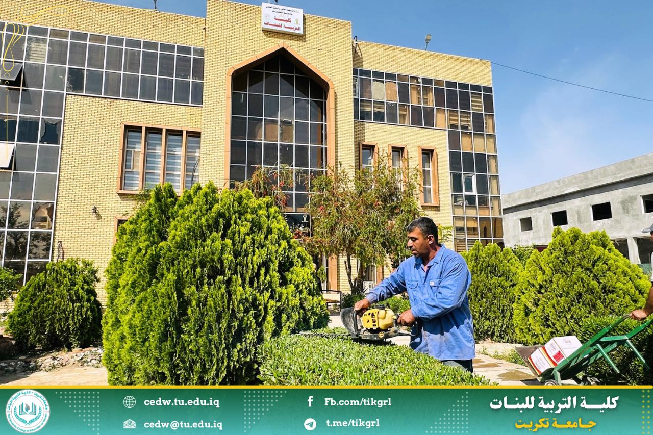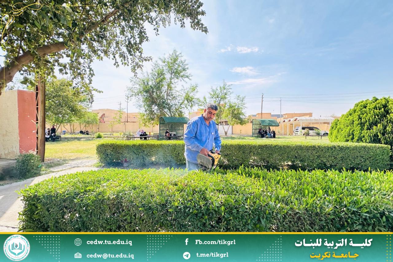 في إطار سعيها المستمر للحفاظ على جمالية البيئة الجامعية، باشرت شعبة الصيانة والخدمات في كلية التربية للبنات بحملة شاملة لتقليم الأشجار وتنظيم الحدائق المحيطة بأبنية الكلية. وتهدف هذه الحملة إلى تعزيز المظهر الجمالي للمساحات الخضراء وتهيئتها لاستقبال الطلبة والمنتسبين في بيئة نظيفة ومنظمة.