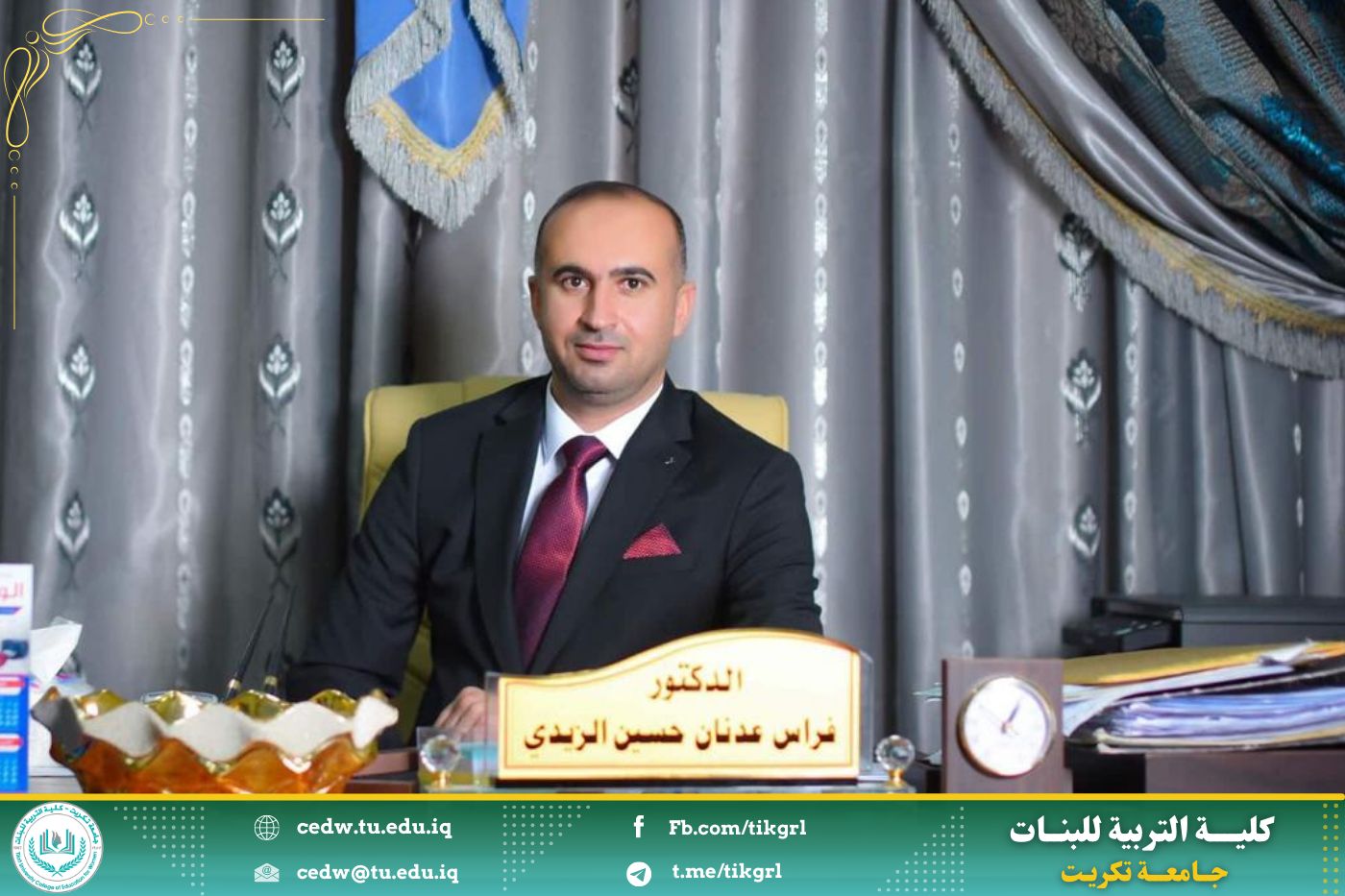 تتقدّم عمادة كلية التربية للبنات، متمثلة بالسيدة العميد الأستاذ الدكتورة نجلاء عبدالحسين عليوي، وأعضاء الهيئتين التدريسية والإدارية، بأحرّ التهاني وأصدق التبريكات إلى التدريسي فراس عدنان حسين خلف من قسم علوم الحياة، وذلك بمناسبة ترقيته العلمية من مرتبة مدرس دكتور إلى مرتبة أستاذ مساعد دكتور في اختصاص (علوم الحياة / أحياء مجهرية).