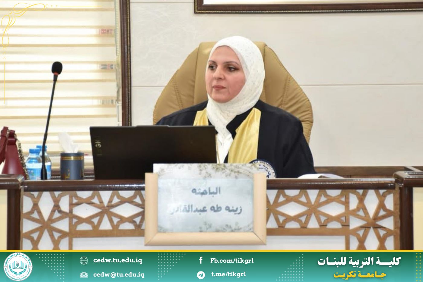 تتقدم عمادة كلية التربية للبنات متمثلة بالسيدة عميد الكلية الاستاذ الدكتورة نجلاء عبدالحسين عليوي وكادرها التعليمي والوظيفي بأحر التهاني وأجمل التبريكات إلى الدكتورة زينة طه عبد القادر التدريسية في قسم الرياضيات في كلية التربية للبنات