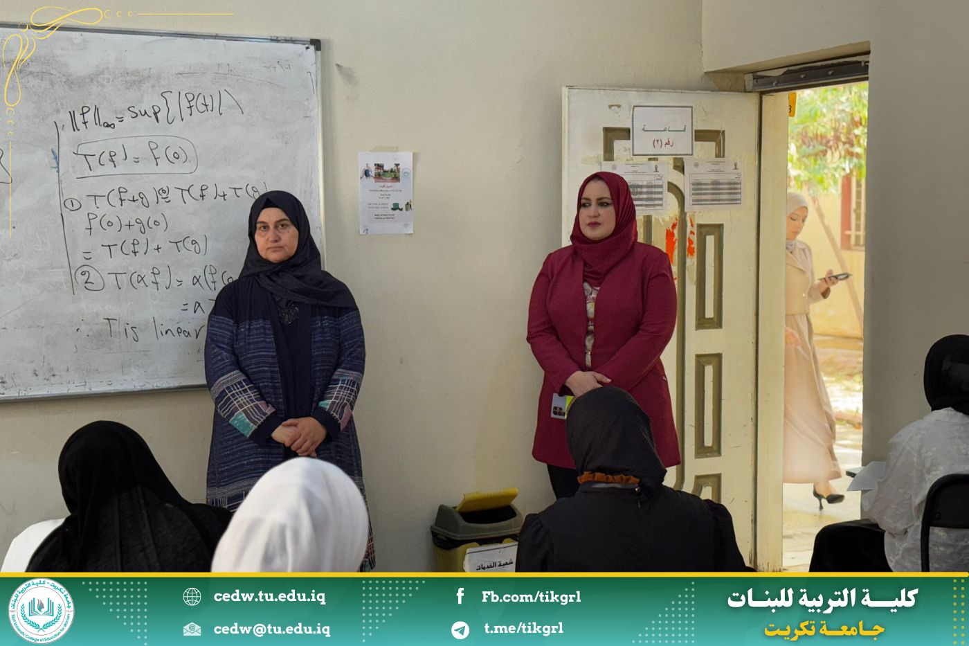 وأجرت السيدة معاون العميد للشؤون العلمية الاستاذ الدكتورة اشرف جمال محمود ، والسيدة معاون العميد للشؤون الادارية الاستاذ المساعد الدكتورة سلمى خالد ياسين ، جولة تفقدية شملت القاعات الامتحانية في مختلف أقسام الكلية، اطلعتا خلالها على مستوى جاهزية القاعات، وتوفّر المستلزمات الامتحانية والبيئة المناسبة للطالبات، فضلاً عن الالتزام بالتعليمات الامتحانية الصادرة عن وزارة التعليم العالي والبحث العلمي.