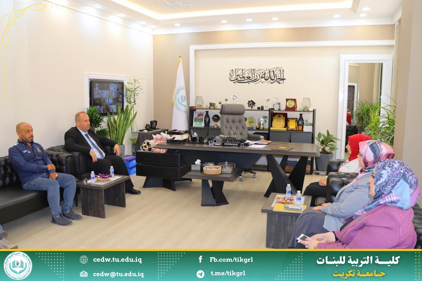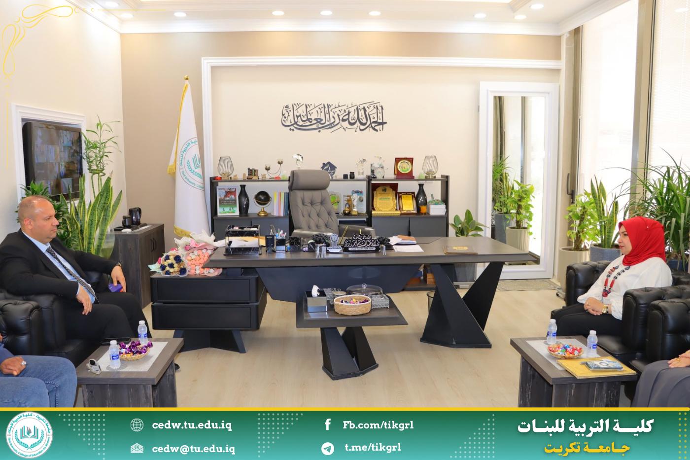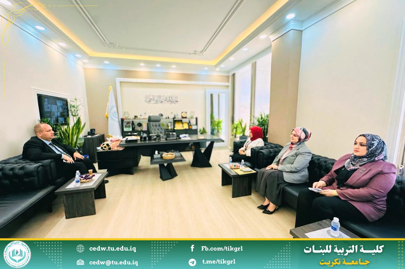 وكان في استقباله السيدة عميد كلية التربية للبنات الأستاذ الدكتورة نجلاء عبدالحسين عليوي، والسيدتين معاونتي العميد للشؤون العلمية والإدارية في الكلية، حيث تم عقد اجتماع تنسيقي لمناقشة آلية إدخال البيانات وتجاوز التحديات التقنية والإدارية المصاحبة لتطبيق النظام.