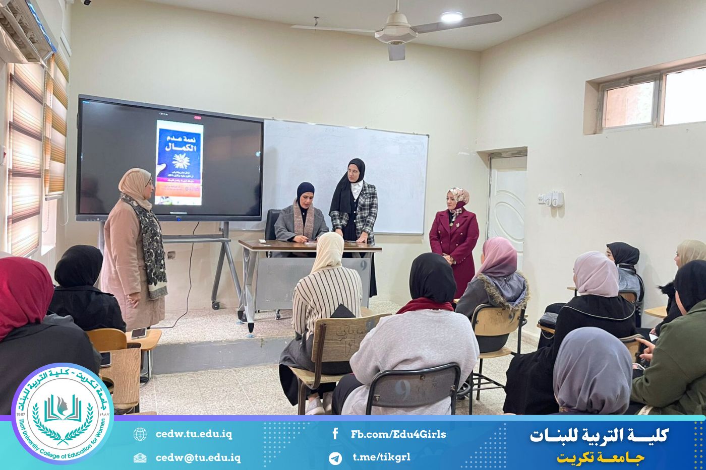 نظّم قسم اللغة الإنكليزية، في كلية التربية للبنات وبإشراف الأستاذ الدكتورة أوفى حسين محمد، جلسة قراءة كتاب بعنوان «نعمة عدم الكمال»، وذلك يوم الأحد الموافق 21 / 12 / 2025 بحضور أعضاء اللجنة الثقافية وطالبات المرحلة الرابعة في قسم اللغة الإنكليزية.