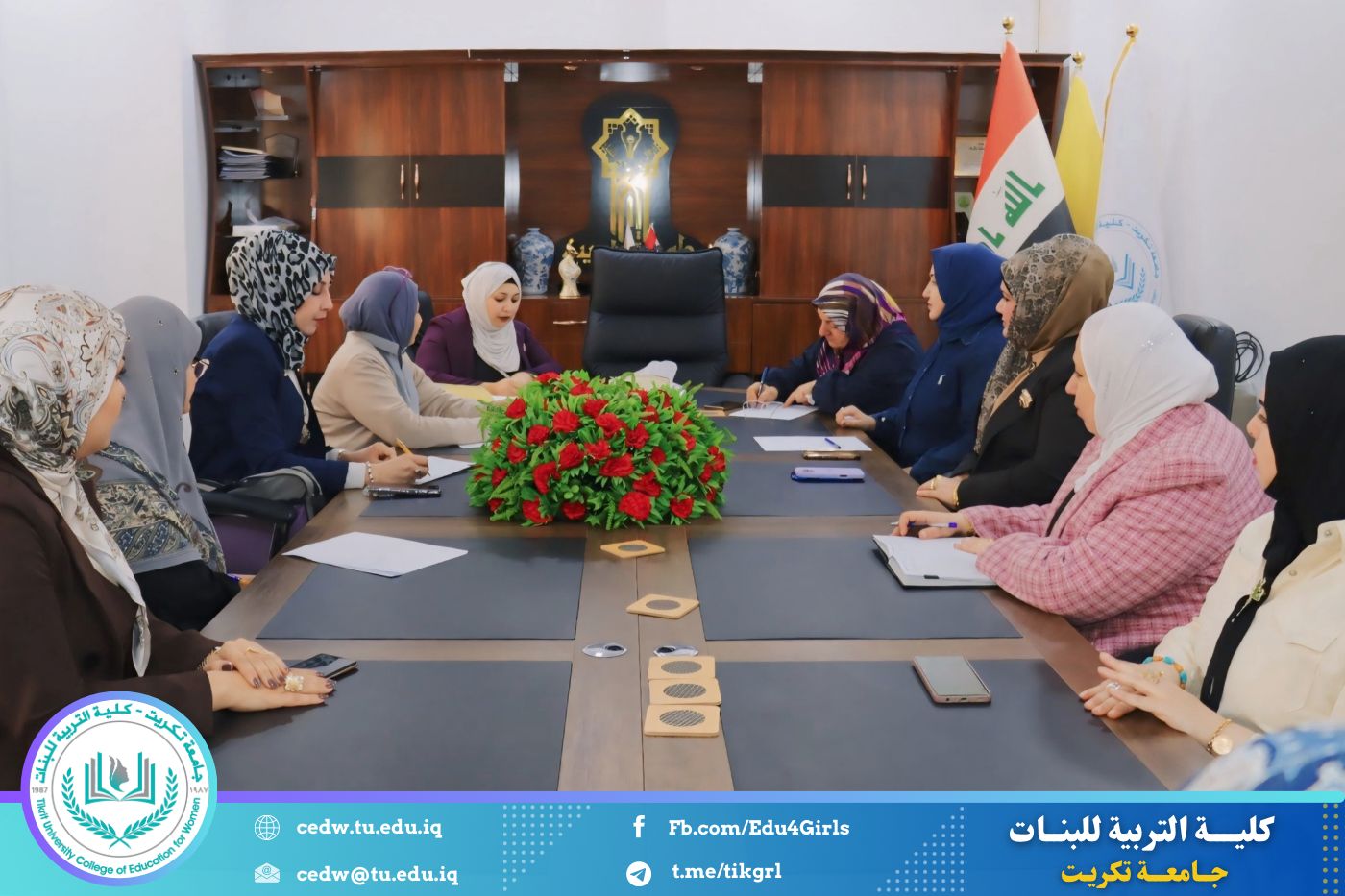 وفي ختام الاجتماع، أكدت السيدة مسؤول ووحدة شؤون المراة الاستاذ المساعد الدكتورة سروة عبدالقادر محمد صالح حرصها على تنفيذ الخطة وفق جدول زمني منظم، بما يسهم في رفع مستوى الوعي وتمكين المرأة داخل الوسط الجامعي، وتحقيق رؤية الكلية في خلق بيئة محفزة وداعمة للطالبات