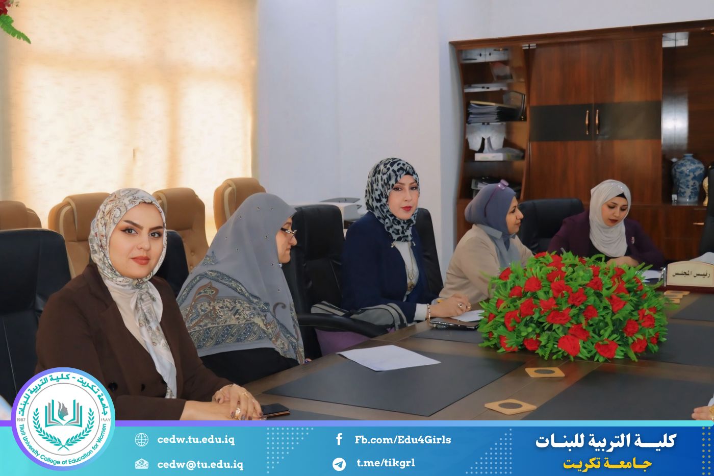 عقدت عضوات وحدة شؤون المرأة في كلية التربية للبنات اجتماعاً موسعاً تنفيذاً لتوجيهات السيدة عميد الكلية، الاستاذ الدكتورة نجلاء عبدالحسين عليوي، في اليوم الاثنين الموافق 24/ 11/ 2025 ، وذلك بهدف مناقشة خطة العمل الخاصة بنشاطات العام الدراسي كاملاً إضافة إلى بحث الاستعدادات الخاصة بـ الأسبوع الريادي الذي تقيمه الكلية سنوياً.