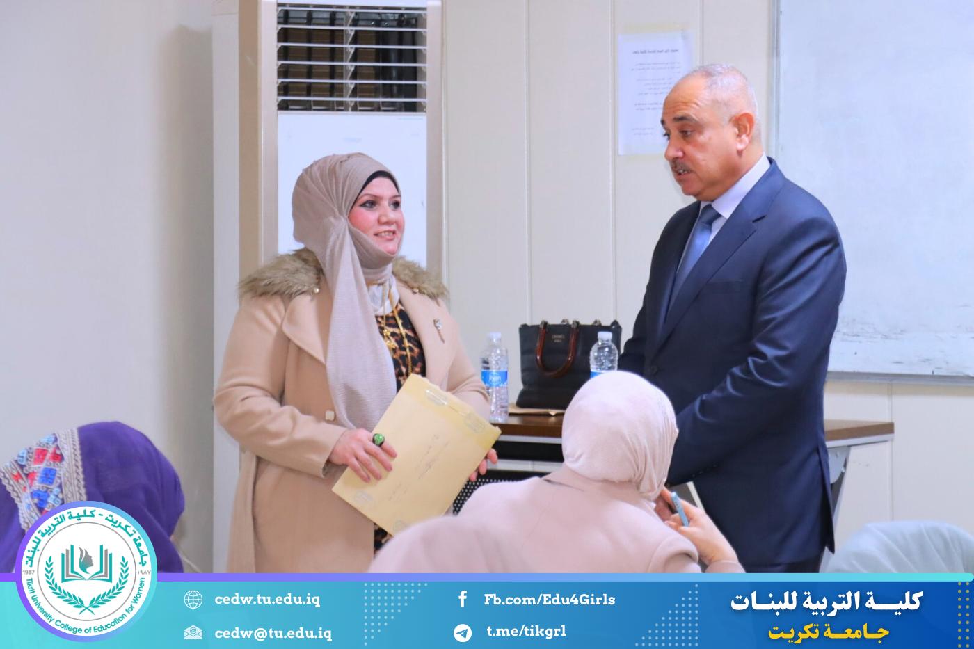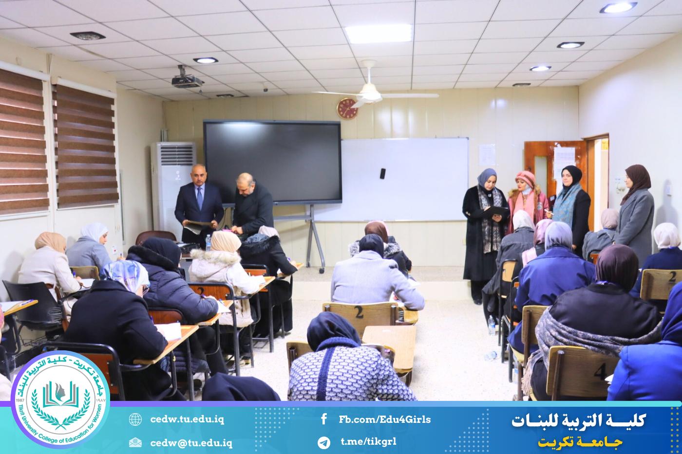 استقبلت كلية التربية للبنات في جامعة تكريت، صباح يوم الثلاثاء الموافق ٣٠ / ١٢ / ٢٠٢٥، اللجنة المركزية المكلفة بمتابعة سير امتحانات طلبة الدراسات العليا للعام الدراسي ٢٠٢٤–٢٠٢٥، ضمن الجهود المستمرة للجامعة لضمان الالتزام بالمعايير الامتحانية وتوفير بيئة أكاديمية منظمة ومناسبة للطلبة.