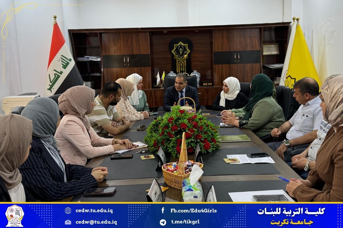 بحضور السيد مساعد رئيس جامعة تكريت للشؤون العلمية الاستاذ الدكتور حسن ابراهيم محمد مجلس كلية التربية للبنات يعقد جلسته في يوم الاثنين الموافق 29/ 7/ 2024 وبحضور السيدة عميد الكلية الاستاذ الدكتورة نجلاء عبدالحسين عليوي وكافة اعضاء المجلس المحترمون