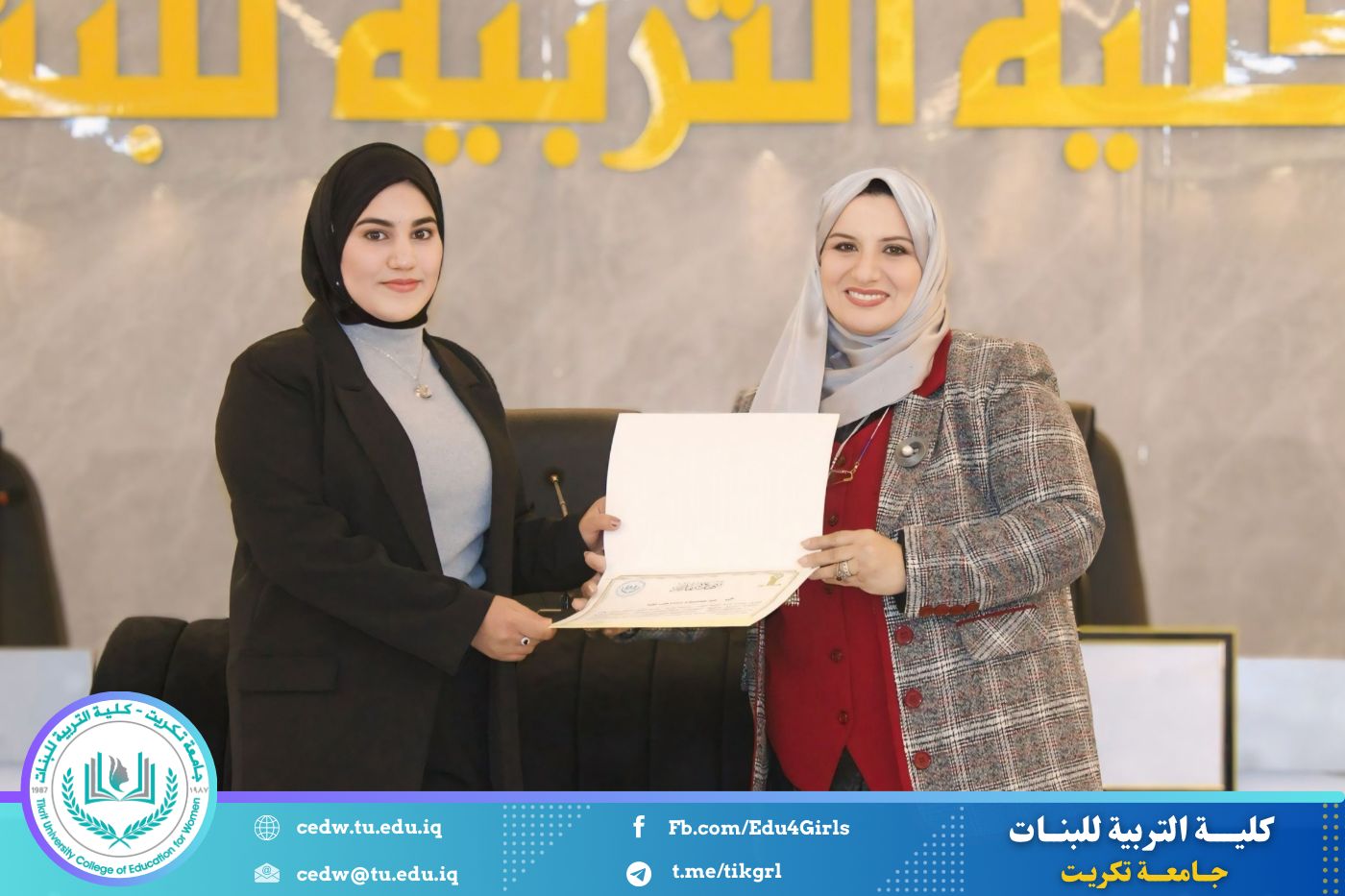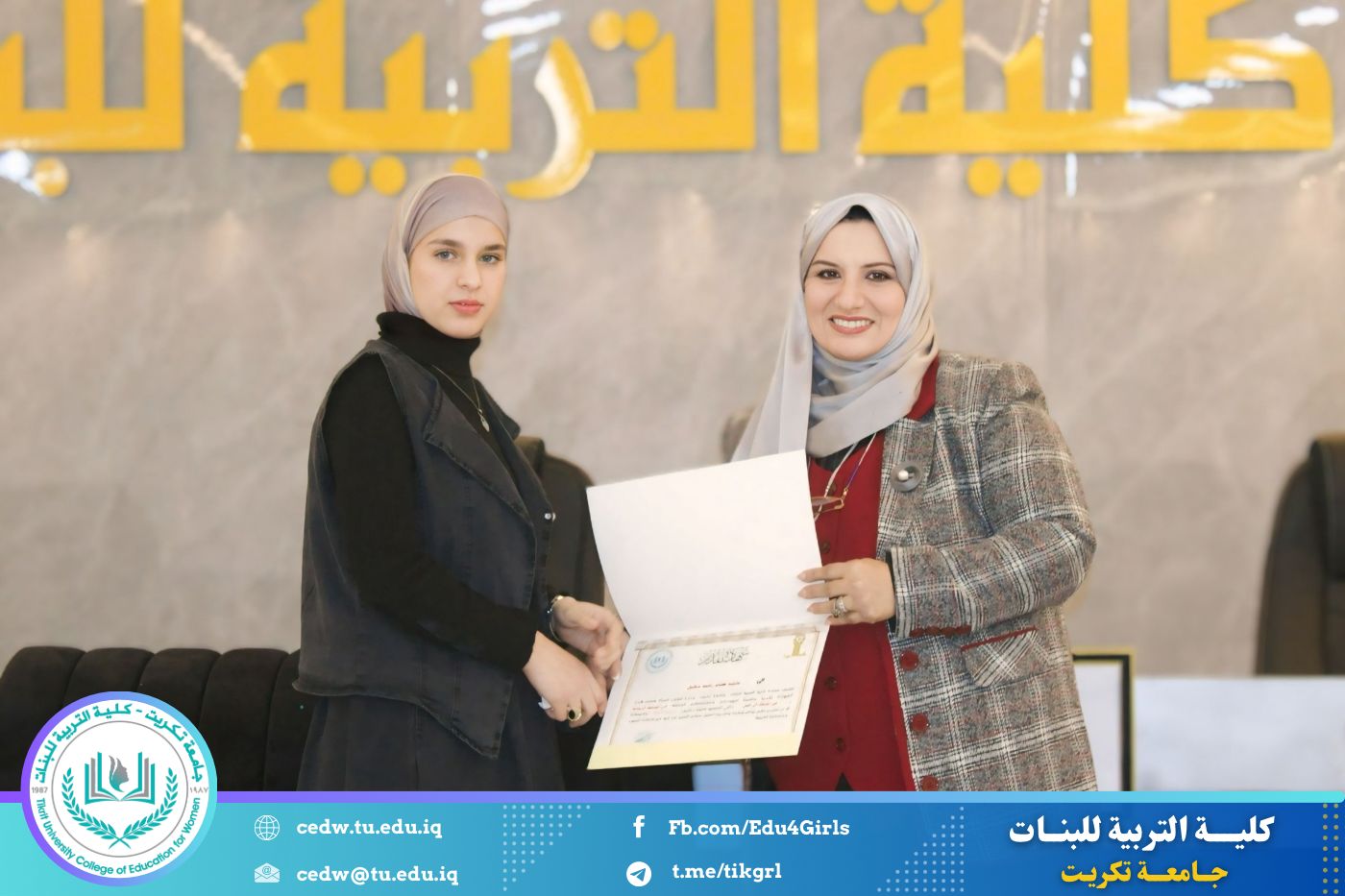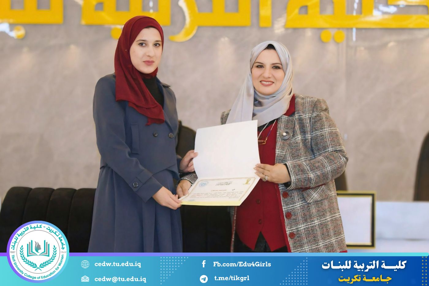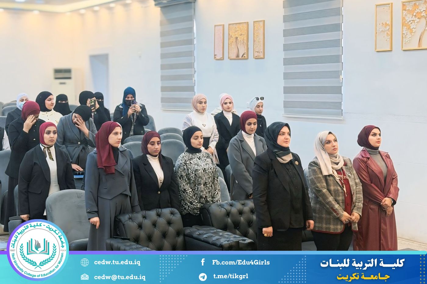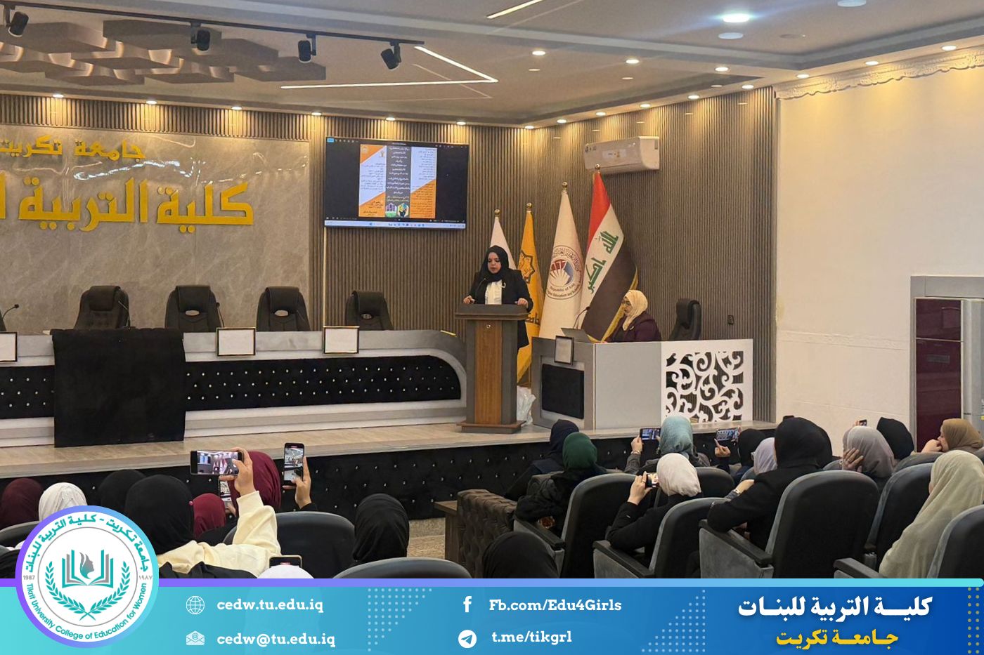 انسجامًا مع توجهات كلية التربية للبنات في جامعة تكريت الهادفة إلى دعم الابتكار وترسيخ ثقافة الريادة في الوسط الجامعي، نظّمت وحدتا شؤون المرأة والتأهيل والتوظيف والمتابعة وبالتعاون مع الأقسام الإنسانية في الكلية، مهرجانًا احتفاليًا صباح اليوم الاثنين الموافق ٨ كانون الأول ٢٠٢٥، على رحاب قاعة المرحوم جايد زيدان، لتكريم الطالبات المشاركات والفائزات في مسابقة الأسبوع الريادي، والذي جاء تحت شعار: