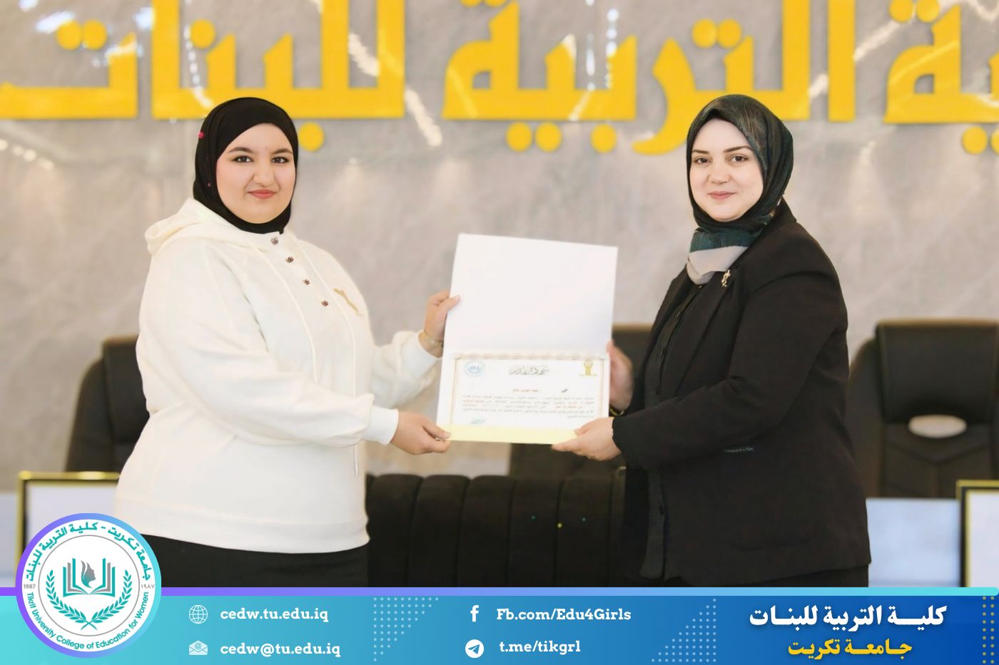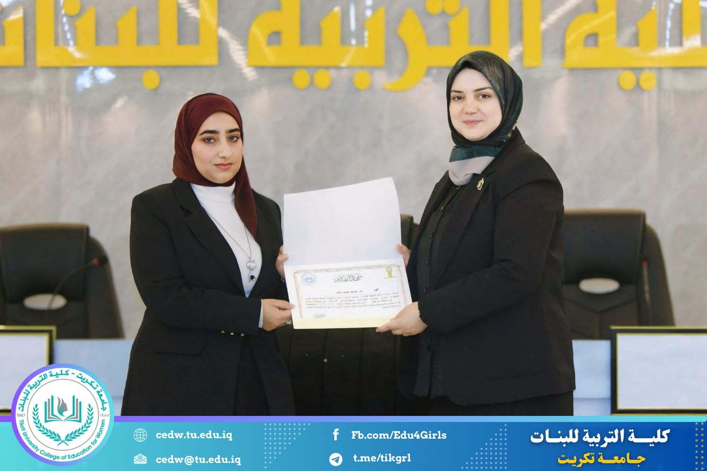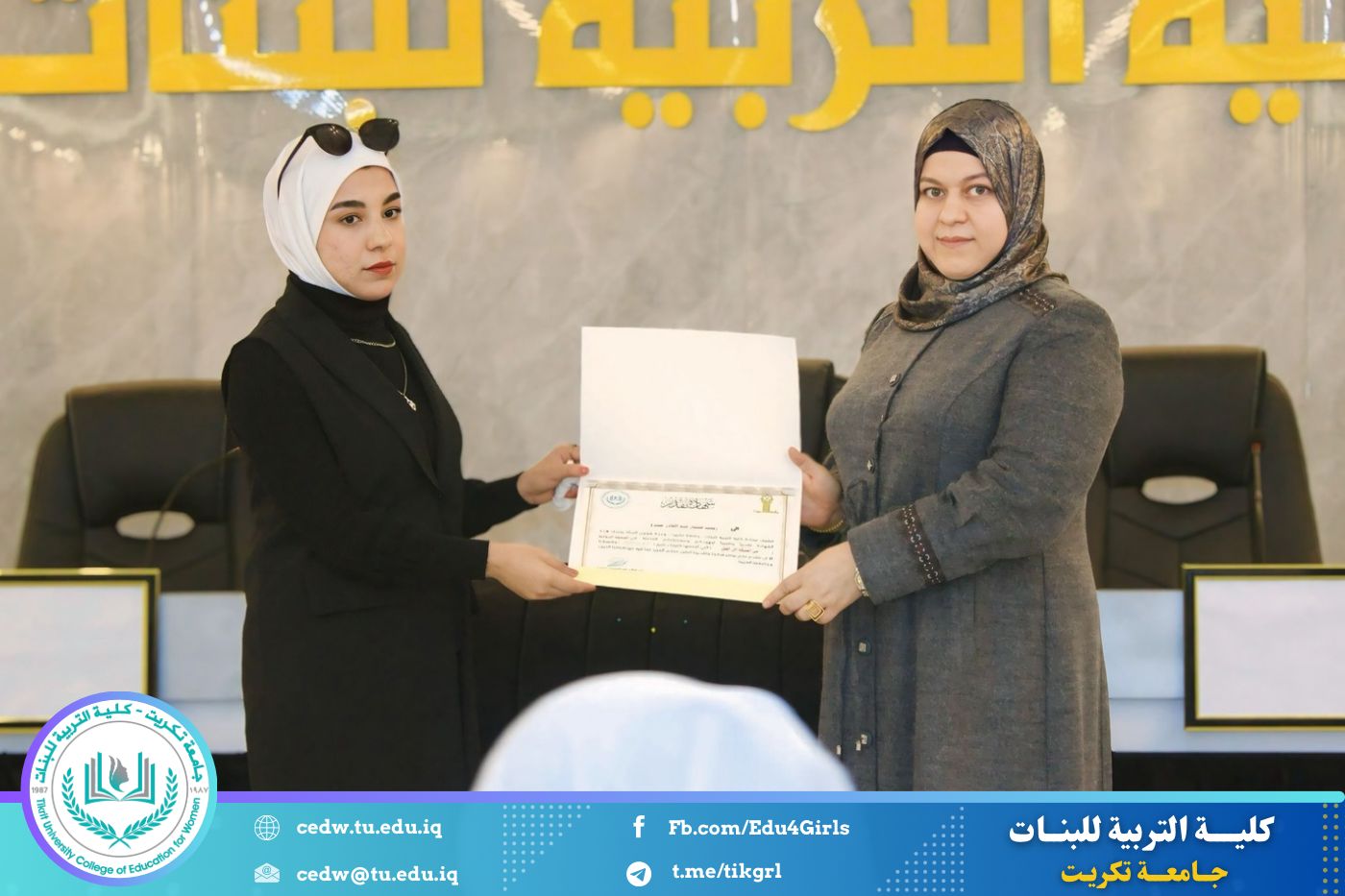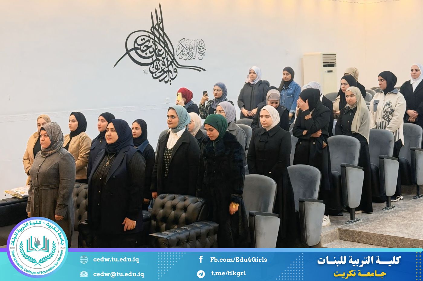 انسجامًا مع توجهات كلية التربية للبنات في جامعة تكريت الهادفة إلى دعم الابتكار وترسيخ ثقافة الريادة في الوسط الجامعي، نظّمت وحدتا شؤون المرأة والتأهيل والتوظيف والمتابعة وبالتعاون مع الأقسام الإنسانية في الكلية، مهرجانًا احتفاليًا صباح اليوم الاثنين الموافق ٨ كانون الأول ٢٠٢٥، على رحاب قاعة المرحوم جايد زيدان، لتكريم الطالبات المشاركات والفائزات في مسابقة الأسبوع الريادي، والذي جاء تحت شعار: