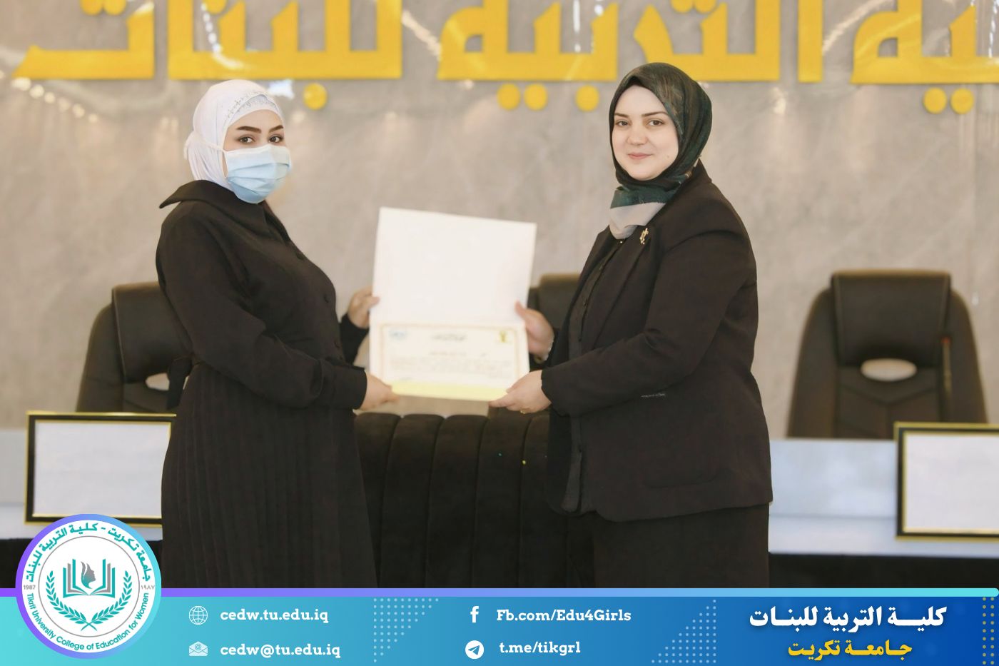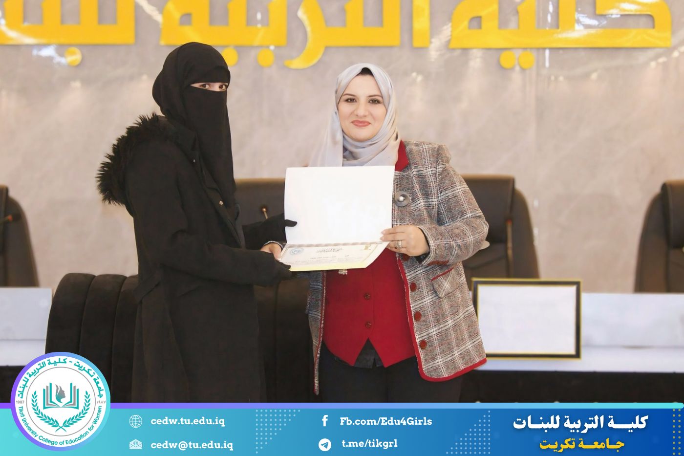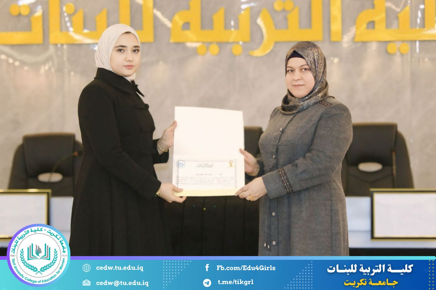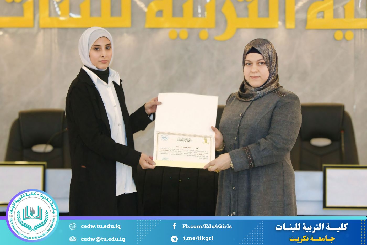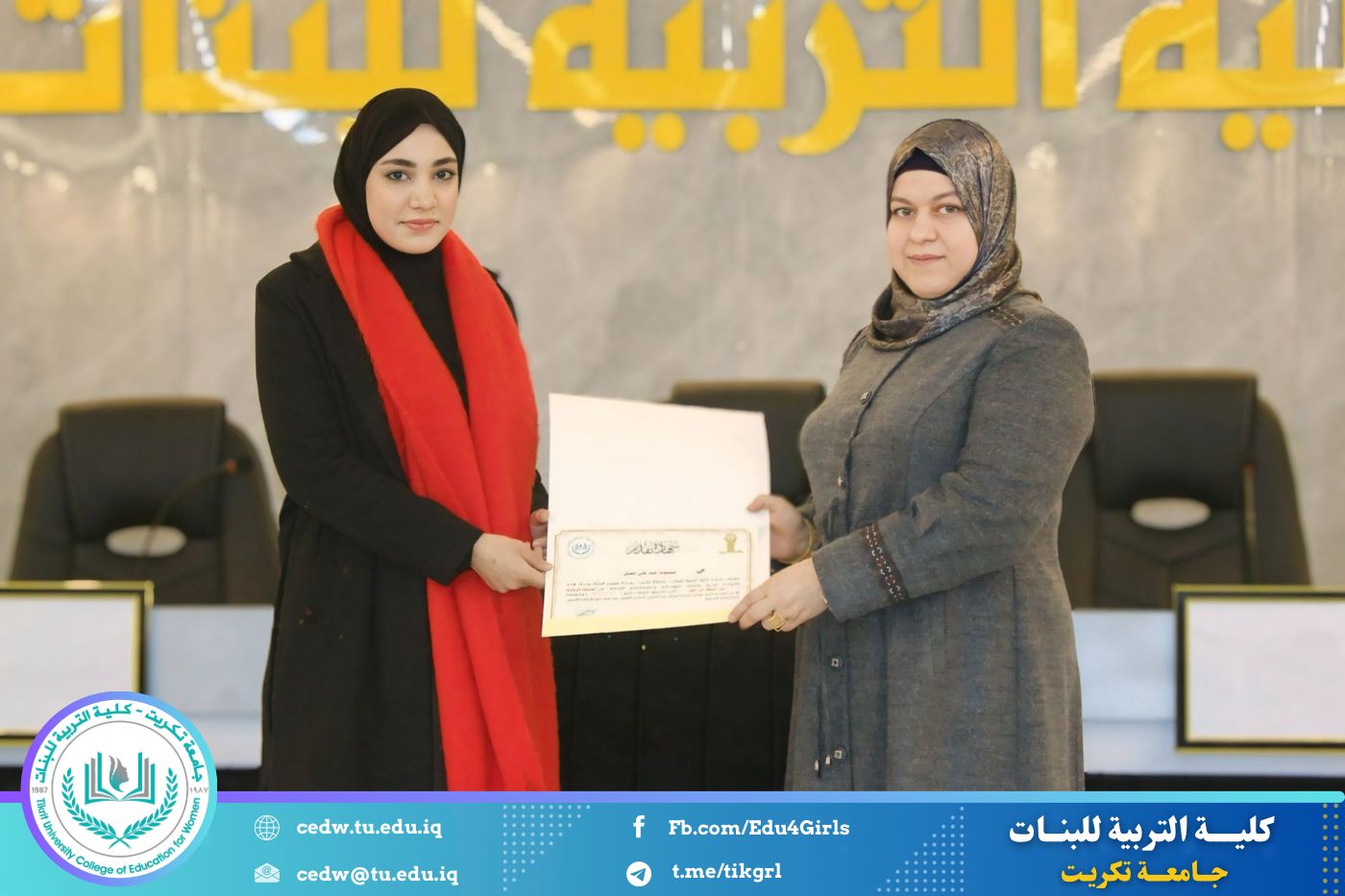 انسجامًا مع توجهات كلية التربية للبنات في جامعة تكريت الهادفة إلى دعم الابتكار وترسيخ ثقافة الريادة في الوسط الجامعي، نظّمت وحدتا شؤون المرأة والتأهيل والتوظيف والمتابعة وبالتعاون مع الأقسام الإنسانية في الكلية، مهرجانًا احتفاليًا صباح اليوم الاثنين الموافق ٨ كانون الأول ٢٠٢٥، على رحاب قاعة المرحوم جايد زيدان، لتكريم الطالبات المشاركات والفائزات في مسابقة الأسبوع الريادي، والذي جاء تحت شعار: