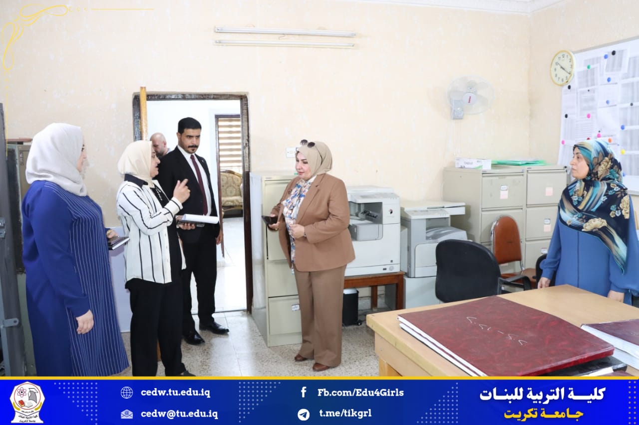 اجرت السيدة عميد كلية التربية للبنات الاستاذ الدكتورة نجلاء عبدالحسين عليوي جولة تفقدية للقاعات والمختبرات في الاقسام العلمية للكلية وذلك في يوم الخميس الموافق 29/ 3/ 2024 وكان برفقتها السيدة معاون العميد للشؤون الادارية الاستاذ المساعد الدكتورة سلمى خالد ياسين