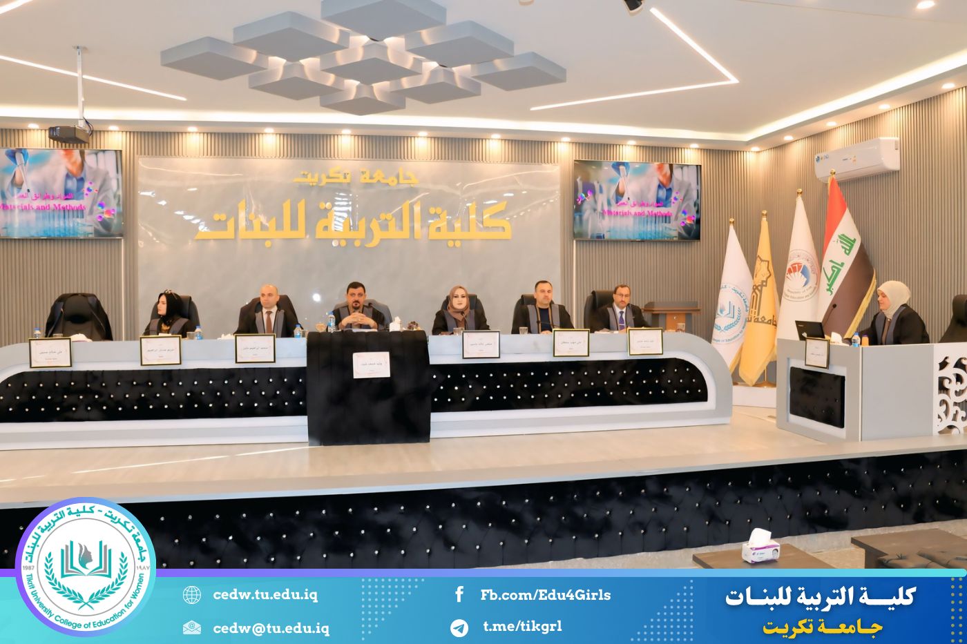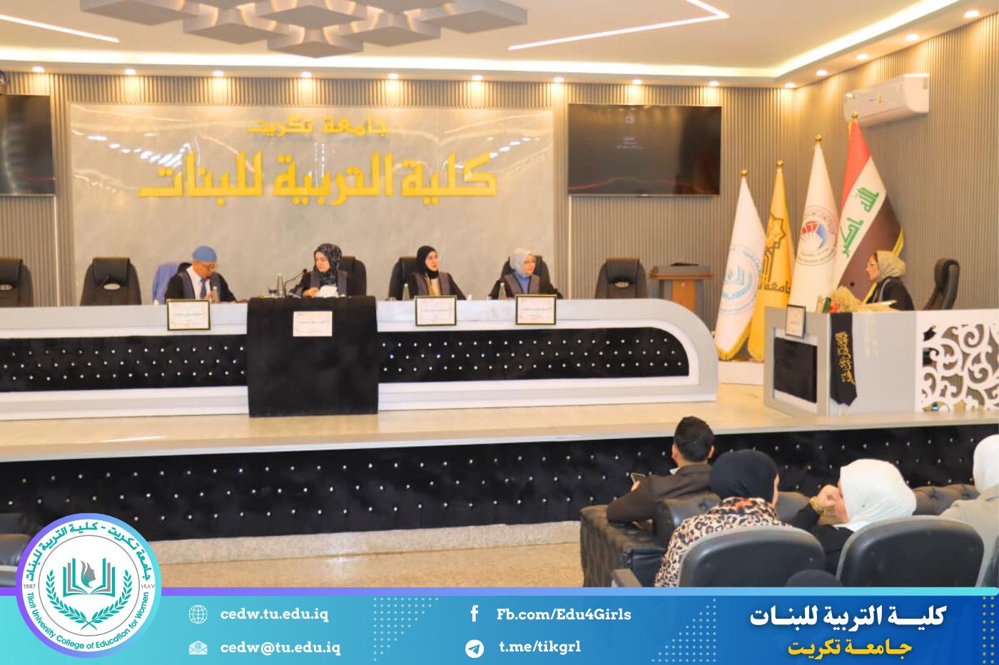 لكلية التربية للبنات مكانة علمية رفيعة فهي إحدى أهم معالم الدراسات الأكاديمية للأقسام الإنسانية والعلمية في جامعة تكريت ، وتقع في وسط مدينة تكريت خارج الحرم الجامعي ، وتضم بنايتين أحداهما تضم الأقسام العلمية والأخرى للأقسام الإنسانية والتي فيها المقر الإداري لعمادة الكلية .تأسست الكلية في العام الذي تأسست فيه جامعة تكريت وهو عام 1987 ، وكانت بمثابة نواة لها وهي بذلك تعدّ أقدم مؤسسة علمية بين أقرانها، وقد أطلق عليها اسم الكلية الأم تيمناً بذلك فغدت معلماً بارزاً لتحقيق أهداف وطموحات وخطط التعليم العالي القائمة على إعداد كادر  نسوي يضطلع بمهام التعليم الثانوي في عموم القطر إلى جانب إعداد باحثين متخصصين في المجال العلمي والإنساني وباختصاصات متنوعة لأقسامها الثمانية حتى أضحت رافداً مهماً لإعداد ملاكات علمية وطنية مقتدرة تصب في حركة البحث العلمي وخدمة المجتمع المحلي والعربي تم قبول الطالبات فيها في العام الدراسي 1988- 1989، ولثلاثة أقسام  هي الرياضيات واللغة العربية واللغة الانكليزية ، ثم تلتها أقسام الكيمياء وعلوم الحياة ثم علوم القرآن والعلوم التربوية والنفسية و قسم التأريخ وأخيراً قسم الاقتصاد المنزلي الذي يعدّ التفسير الفعلي لمعنى (كلية التربية للبنات) . وتحوي الكلية مرافق متعددة ففيها  مكتبة ضخمة تحوي مجاميعاً من الكتب والمطبوعات والمواد الثقافية اأخرى ، فهي تحوي (15575) كتاباً، و(265) دورية، و(1204 )رسالة وأطرروحة و (175 ) قرصاً مضغوطاً