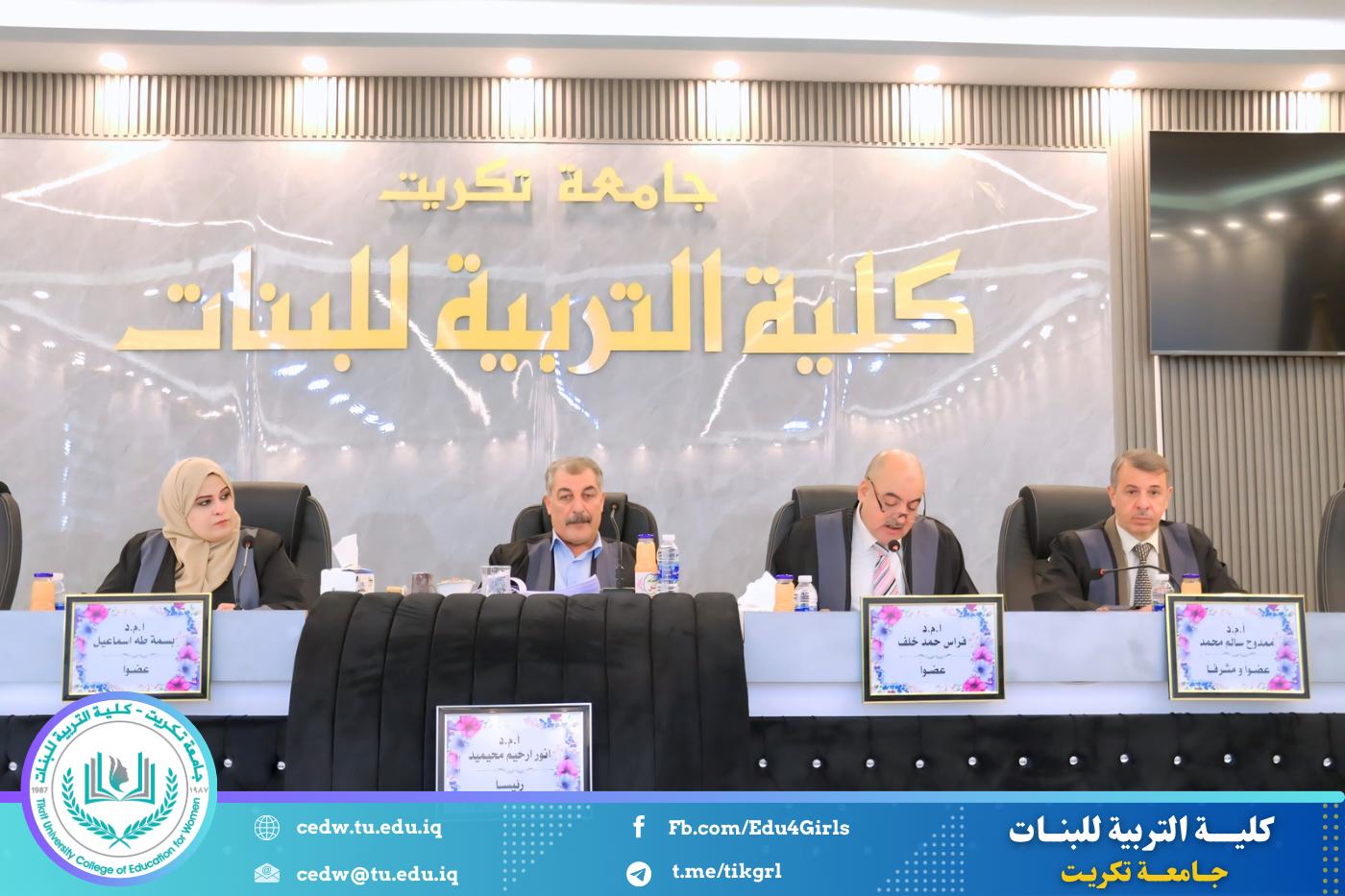 نوقشت في كلية التربية للبنات – قسم التاريخ، صباح يوم الثلاثاء الموافق ٢٧ / ١ / ٢٠٢٦، وعلى رحاب قاعة المرحوم الأستاذ الدكتور جايد زيدان، رسالة الماجستير المقدَّمة من الطالبة إسراء مجيد عبد، والموسومة: