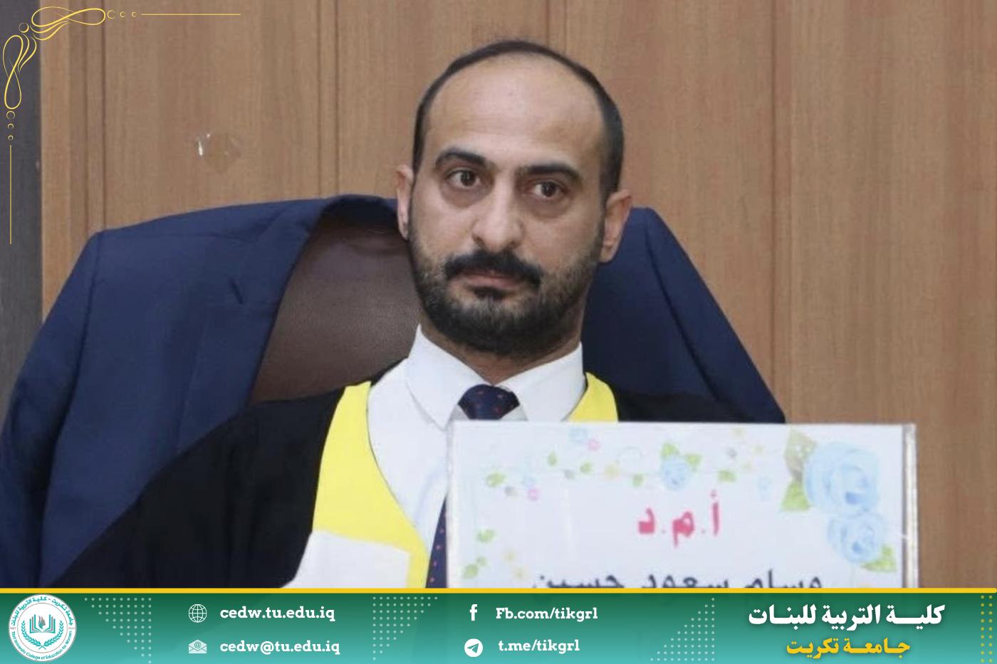 شارك الأستاذ المساعد الدكتور وسام سعود حسين داود، التدريسي في قسم اللغة العربية بكلية التربية للبنات – جامعة تكريت، في عضوية لجنة مناقشة رسالة ماجستير في قسم اللغة العربية بكلية الآداب – جامعة تكريت، والمقدَّمة من الطالبة هالة محمد عبد محمود، والموسومة: "الفقد في شعر الفرسان في العصر الجاهلي".