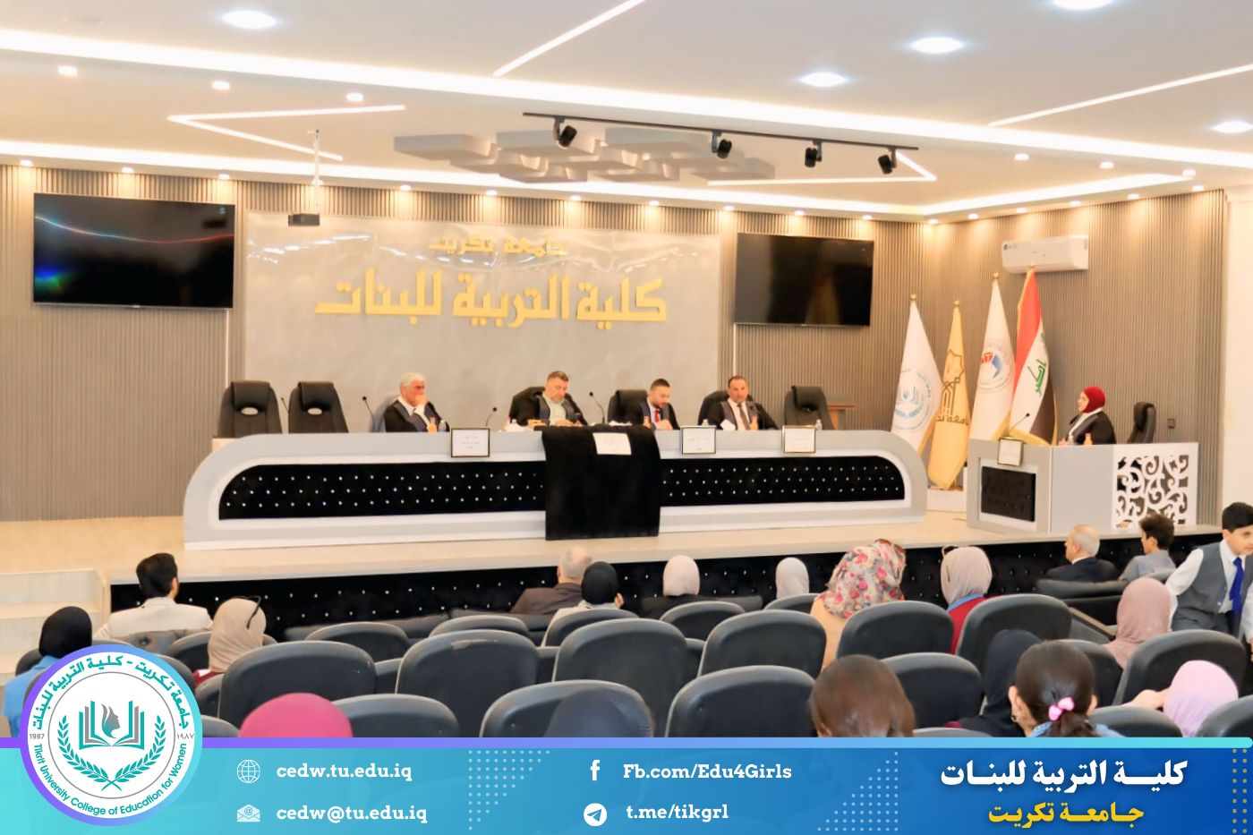 شهدت كلية التربية للبنات – جامعة تكريت – قسم علوم القرآن والتربية الإسلامية، صباح اليوم الأربعاء الموافق ١٨ / ٢ / ٢٠٢٦، وعلى قاعة المرحوم الأستاذ الدكتور جايد زيدان، مناقشة رسالة الماجستير المقدَّمة من الطالبة هوازن أحمد حسن، والموسومة: